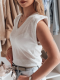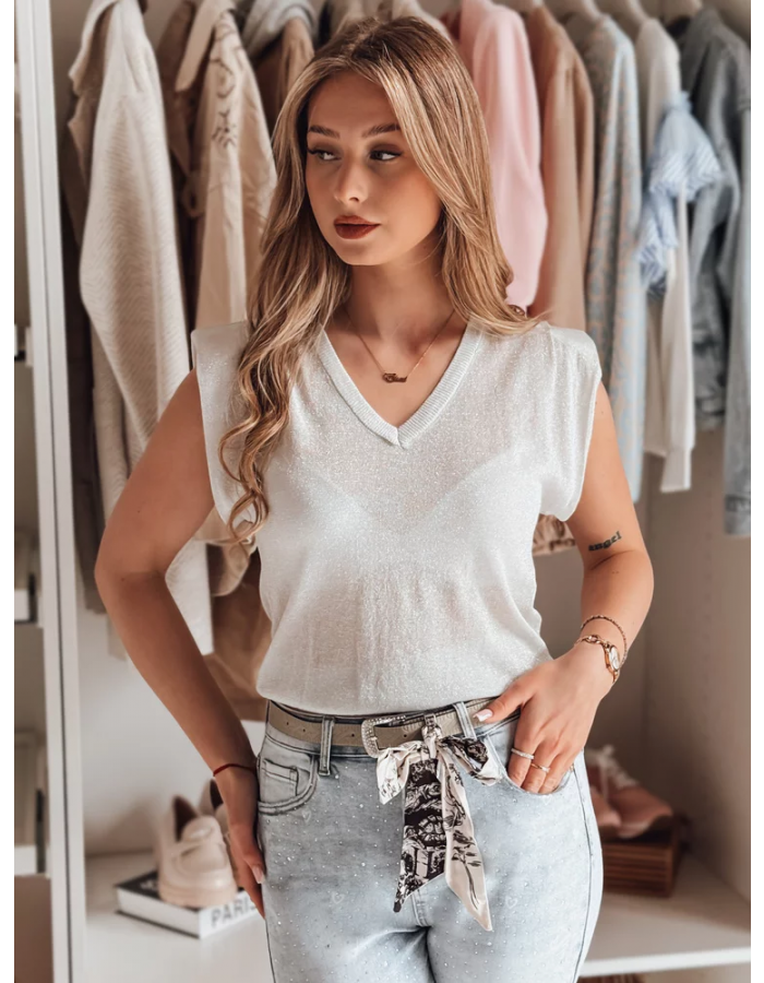 Nowoczesna bluzka damska bez rękawów, która świetnie sprawdzi się jako baza do wielu stylizacji. Delikatny materiał otula sylwetkę, a elastyczny dół zapewnia doskonałe dopasowanie. Uniwersalny rozmiar pasuje od XS do L. Klasyczny dekolt V-neck nadaje całości subtelnej elegancji, idealnej do casualowych i eleganckich outfitów.