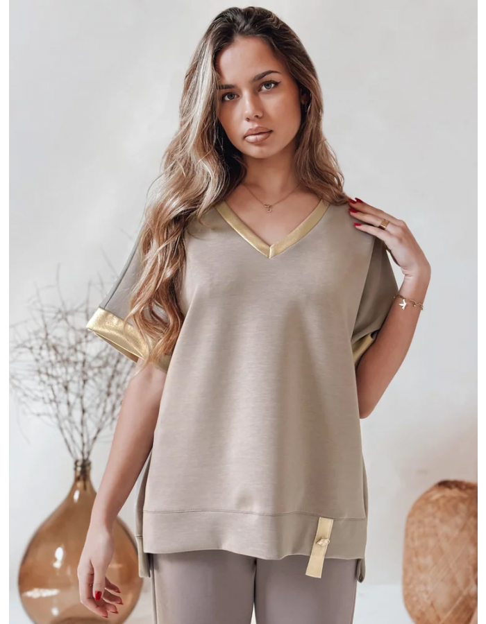 Bluzka damska oversize SHINE LOVE mokka Dstreet RY2911 Uniwersalny