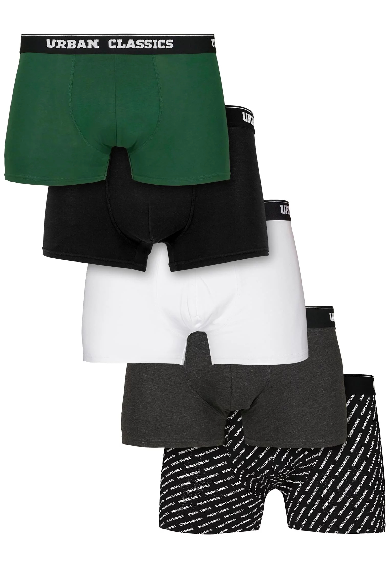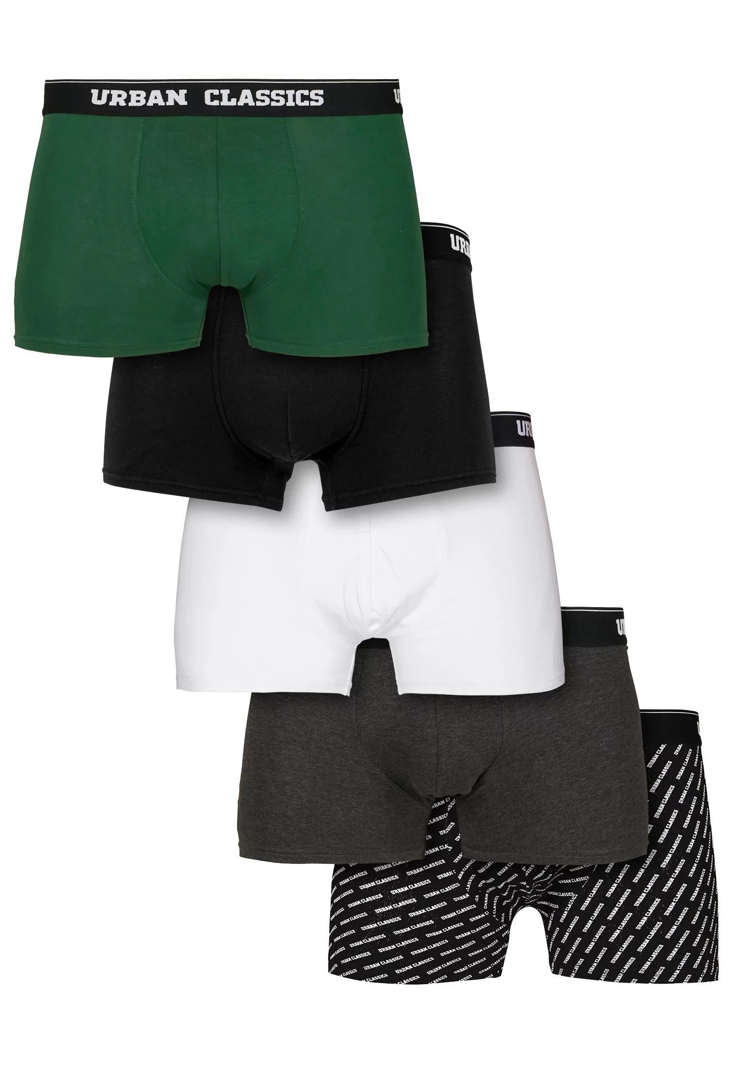 Praktické pět v jednom balení obsahuje pět stylových boxerek Urban Classics.Pánské spodní prádlo je vyzkoušeného a testovaného slim střihu a nabízí elastický pas s nepřetržitým logem Urban Classics. Pánské boxerky jsou vyrobeny z bavlněné tkaniny šetrné k pokožce s podílem elastanu a zaručují maximální pohodlí při nošení.
