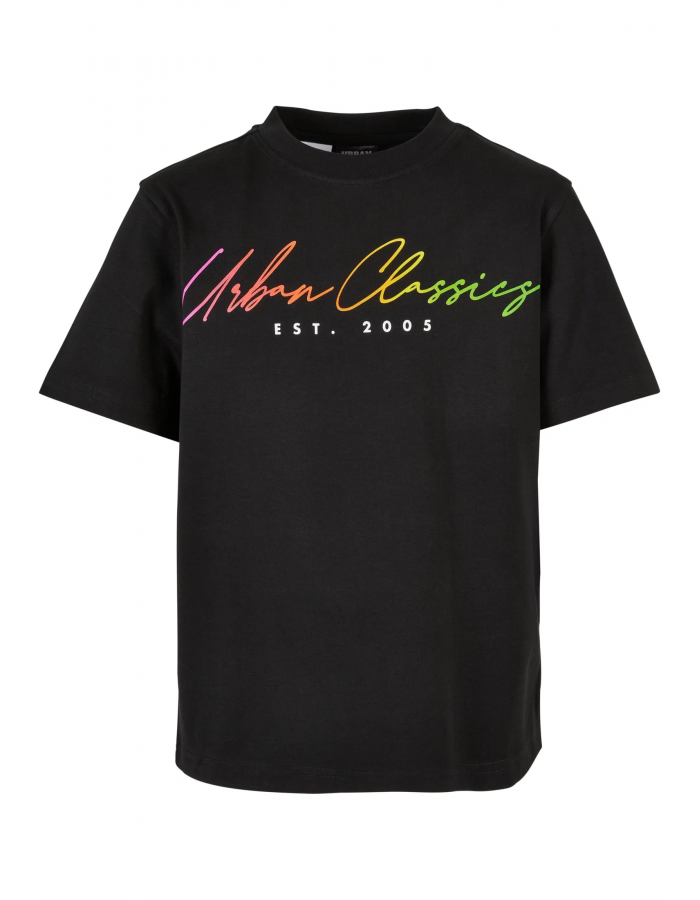 Základní tričko s logem potěší klasickým, pohodlným střihem a moderním potiskem Urban Classics. Kurzivní nápis loga se táhne přes hruď v efektním barevném přechodu. Styl je zakončen kulatým výstřihem a mírně spadlými rameny. Toto letní tričko nabízí uvolněný oversize střih a příjemnou bavlnu z jednoho žerzeje a je pohodlným společníkem.