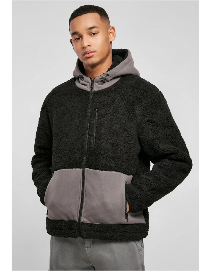 Pánská bunda Urban Classics zaujme svým chytrým designem a kontrastními díly. Respektive kapuce, spodní rukávy a část kolem bočních kapes barevně i materiálově vyčnívají ze zbytku bundy, který je vyroben z látky Sherpa. Snadno se zapíná pomocí průběžného zipu, zatímco kapuce se nastavuje pomocí šňůrky a zarážky. Pánská bunda navíc nabízí tři kapsy na zip – dvě boční a jednu svislou na hrudi. Bunda má pravidelný střih.