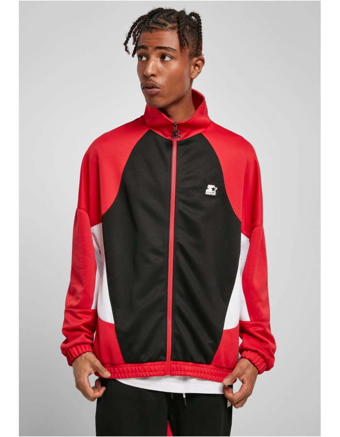 Tato důmyslně navržená tepláková bunda pro muže se vyznačuje úspěšným barevným blokem, který vytváří autentický styl. Sportovní bunda je volného střihu se širokými spadlými rameny, stojáčkem, elastickým lemem a elastickými manžetami. Samozřejmostí jsou i boční kapsy. Styl je definován barevnými vsadkami na bocích, vpředu a vzadu. Pěkný detail: přední zip používá ramínko na zip v designu Starter. Bunda je navíc označena gumovou nášivkou Starter na levé straně hrudi, která se opakuje jako výšivka na levém rukávu a jako tkané logo na levé kapse. Propracovaný branding doplňuje Starter šipka u krku. Konečně je tepláková bunda vyrobena z pohodlného polyesterového trikotu.