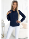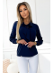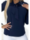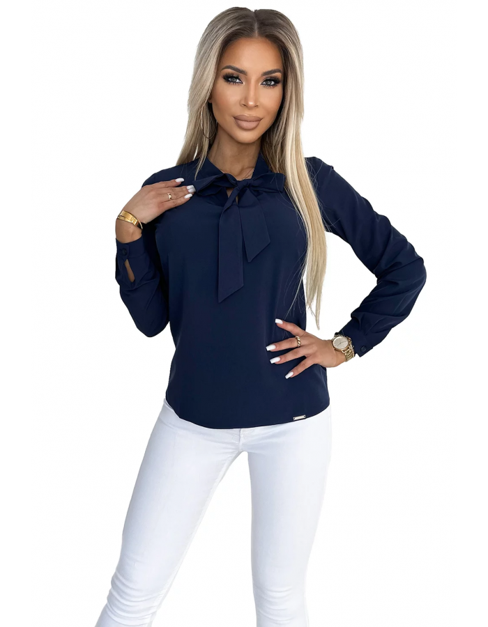 Businessová halenka s dlouhým rukávem a vázáním vpředu - ušitá z příjemného materiálu v tmavě modré barvě.