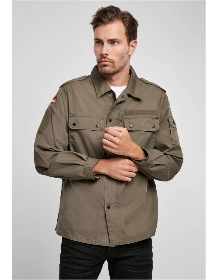 "BW Field Blouse" je klasická košile založená na košili Bundeswehru! Odolná směsová tkanina. Náprsní a nadpažní kapsy se zapínáním na druky. Robustní přední zip. Epolety. Manžety se suchým zipem. Plocha nášivky na hrudi a nadloktí, stejně jako emblémy na obou pažích, doplňují výrobek.