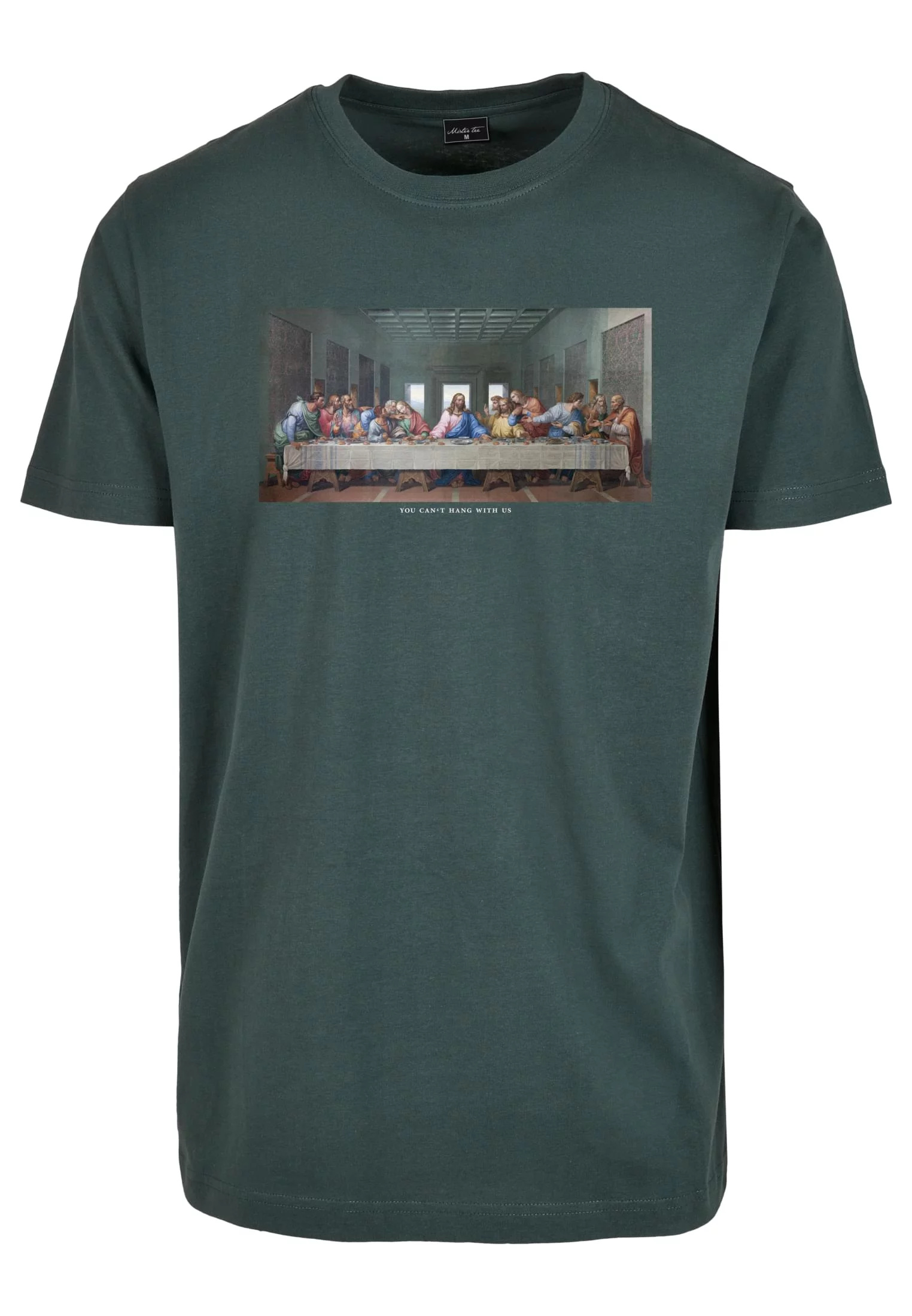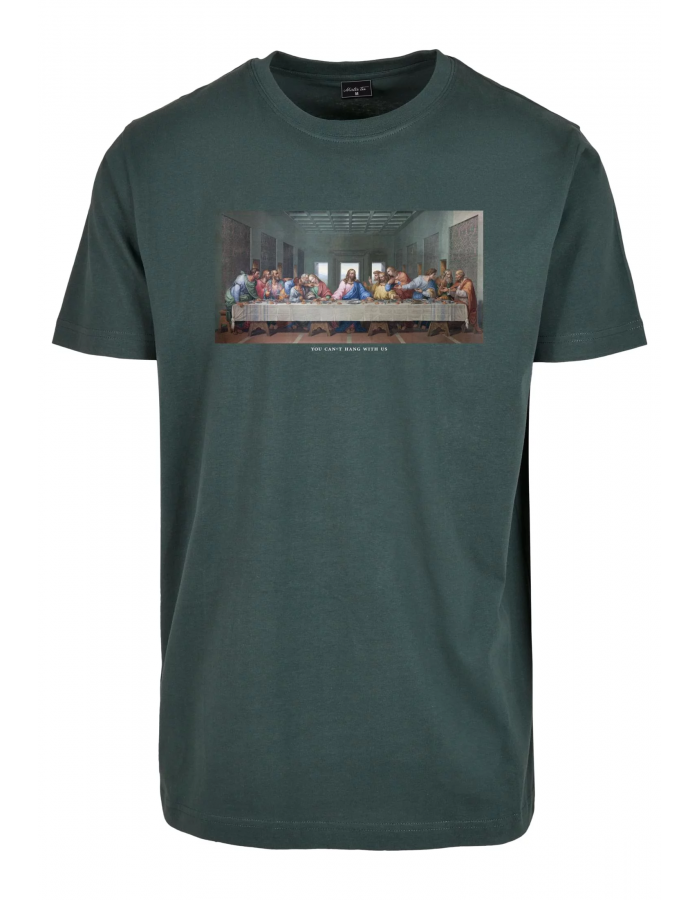 Jak exkluzivní je vaše klika?! Ukažte světu s tímto ikonickým tričkem, že každého do svého kruhu jen tak nepustíte! Potisk na přední straně zobrazuje světoznámý obraz Ježíše a jeho učedníků při Poslední večeři a nápis „Nemůžete se s námi pověsit“, který z tisku činí skutečnou výpověď.