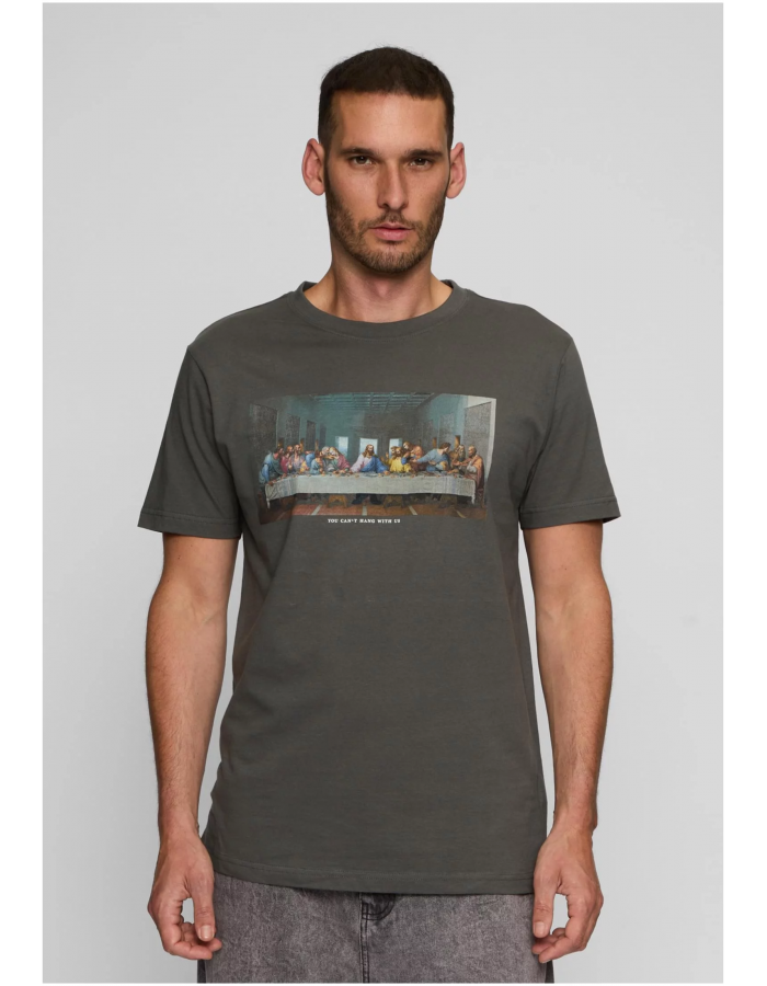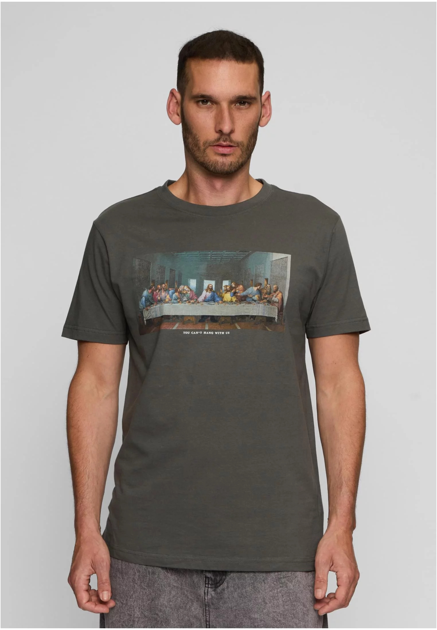Jak exkluzivní je vaše klika?! Ukažte světu s tímto ikonickým tričkem, že každého do svého kruhu jen tak nepustíte! Potisk na přední straně zobrazuje světoznámý obraz Ježíše a jeho učedníků při Poslední večeři a nápis „Nemůžete se s námi pověsit“, který z tisku činí skutečnou výpověď.