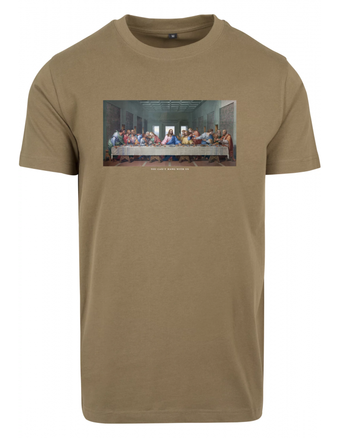 Jak exkluzivní je vaše klika?! Ukažte světu s tímto ikonickým tričkem, že každého do svého kruhu jen tak nepustíte! Potisk na přední straně zobrazuje světoznámý obraz Ježíše a jeho učedníků při Poslední večeři a nápis „Nemůžete se s námi pověsit“, který z tisku činí skutečnou výpověď.