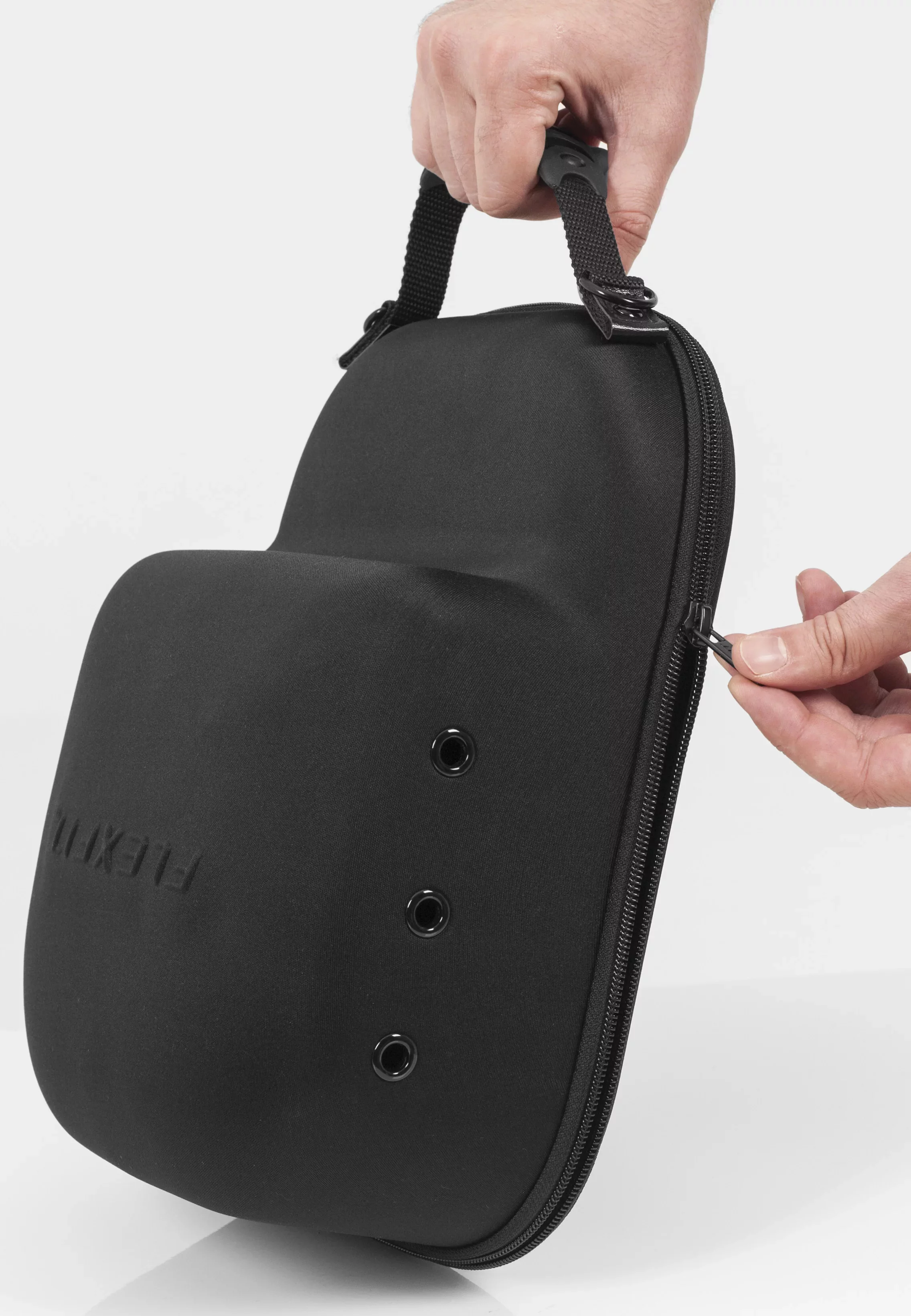 Nosič čepic FLEXFIT dává nositelům čepic a sběratelům možnost přepravovat, skladovat a chránit až 6 čepic. Vyrobeno z materiálu EVA odolného proti rozdrcení, lze jej prát, ale není vhodné do sušičky. 6 ventilačních oček zajišťuje dobrou cirkulaci vzduchu. Nosič čepice FLEXFIT lze snadno otevřít díky zapínání na dvojitý zip. Dále obsahuje dva kovové kroužky pro pohodlné připevnění na kufr nebo batoh. Pogumované rukojeti poskytují pohodlné uchopení při přepravě. Jemné logo značky dodává cool vzhled.