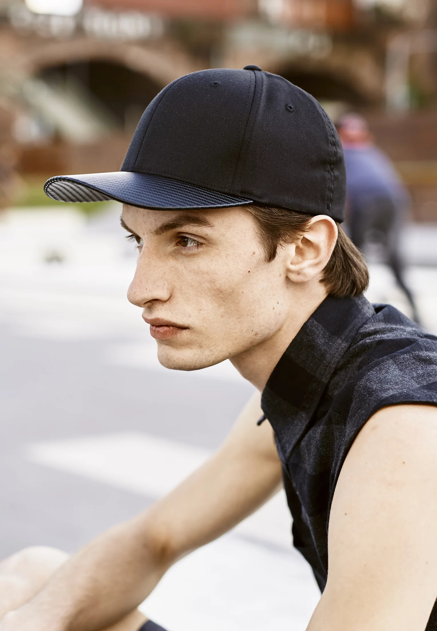 Atletický tvar. Tvrdý buckram. Kšilt v karbonovém stylu.