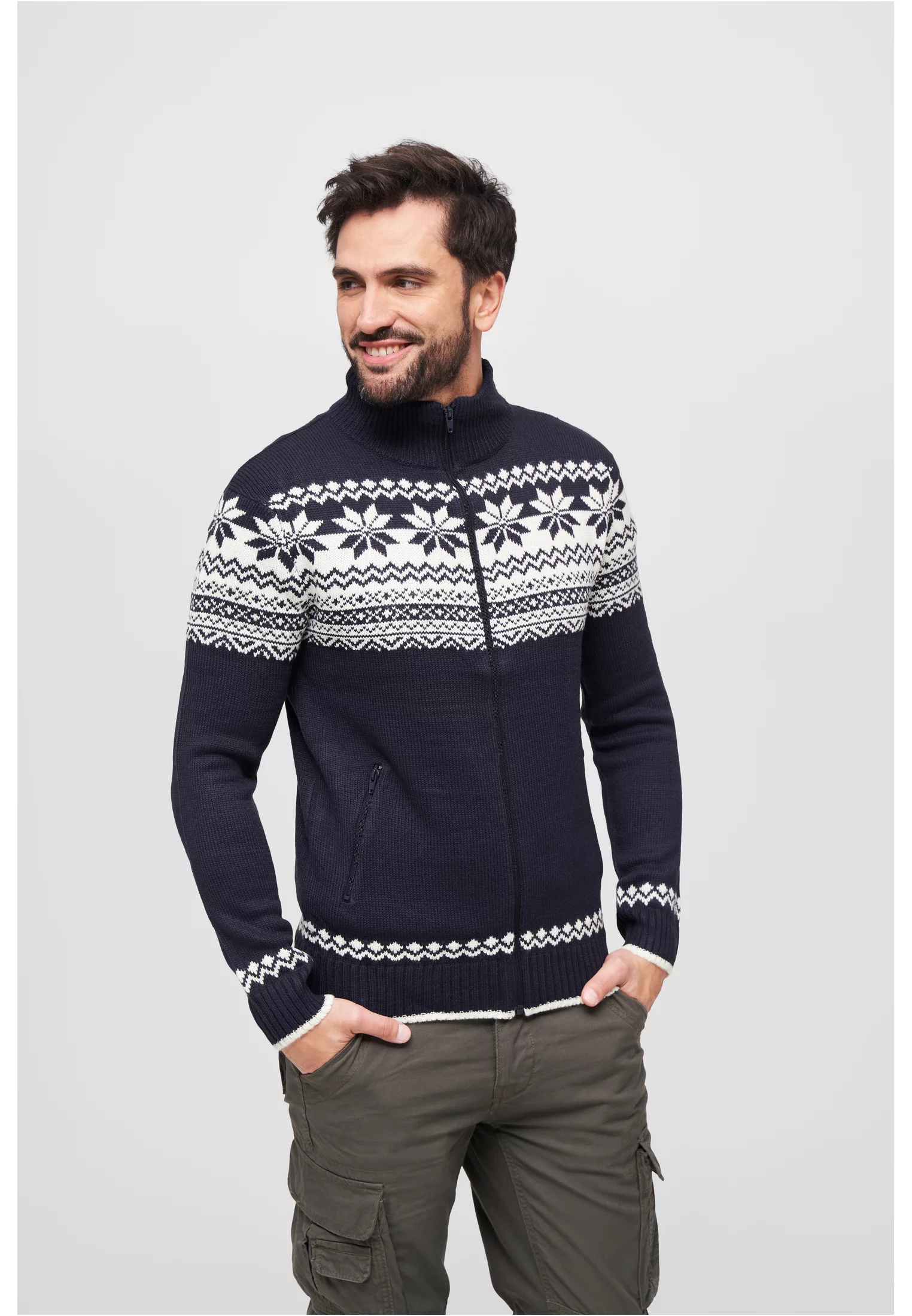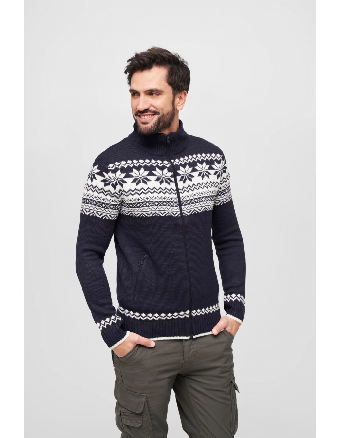 Pánský svetr Brandit přináší spojení klasického severského vzoru a praktického celopropínacího střihu.