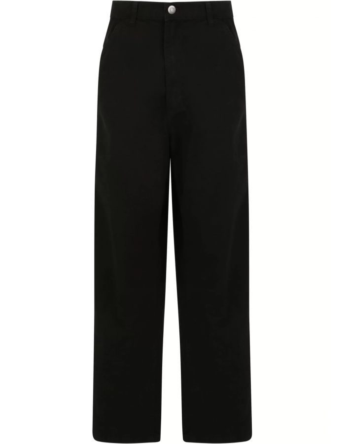 Trendy pánské kalhoty mají v pase střih a rozepínají se směrem dolů, aby zajistily módní a chladný vzhled. Kromě volných vypasovaných nohavic se vyznačují prvky tesařských kalhot, jako je například poutko na kladívko na levé nohavici. Co se kapes týče, je dobře vybavená. Pánské kalhoty nabízejí dvě velké našité kapsy na zádech, dvě šikmé kapsy na přední straně a malou kapsu na pravé nohavici. Kalhoty doplňují poutka na opasek a pevný bavlněný kepr.