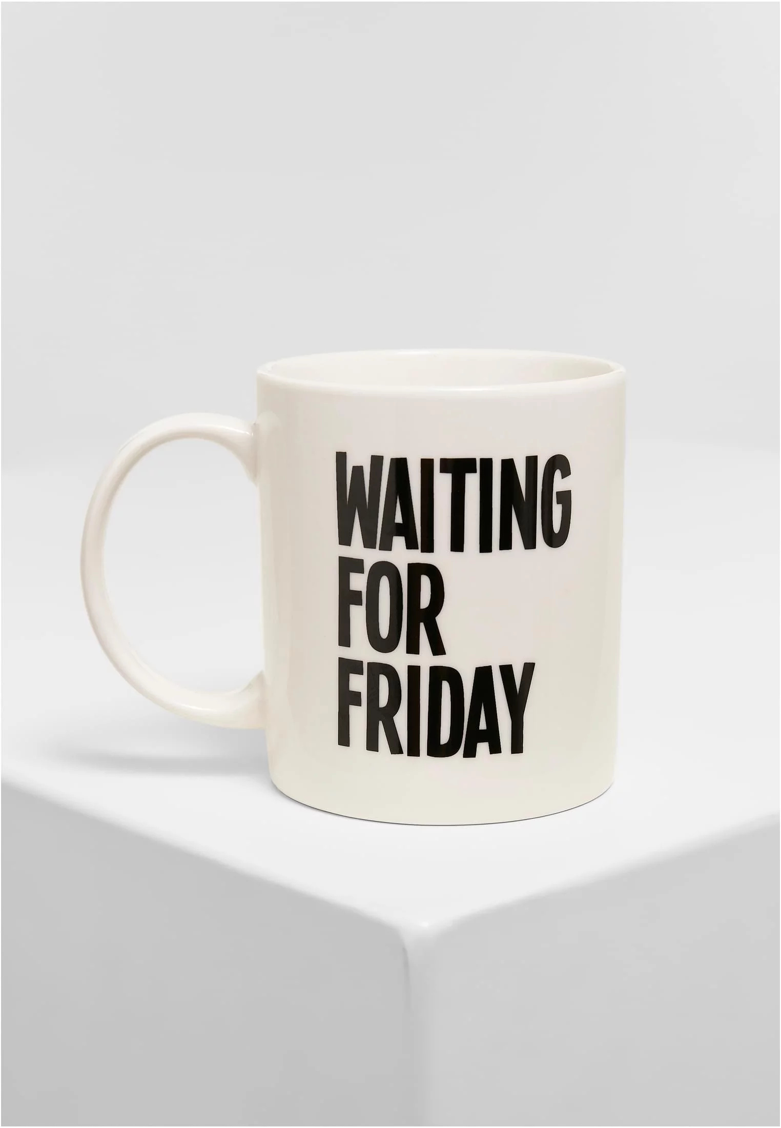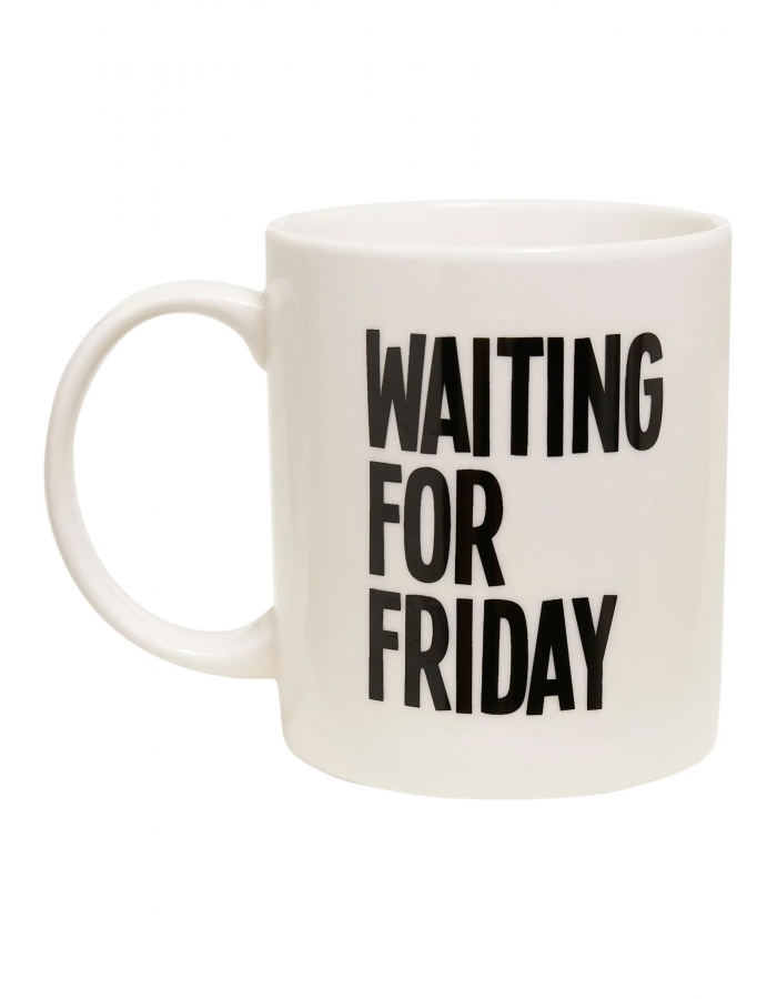 Ten pravý šálek kávy pro všechny milovníky víkendů! Vyznačuje se velkými písmeny slogan „čekání na pátek“, zatímco ve spodní části je protějšek „no ne, je pondělí“. Šálek na kávu je vyroben z keramiky a nabízí velké ucho.