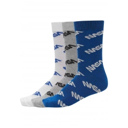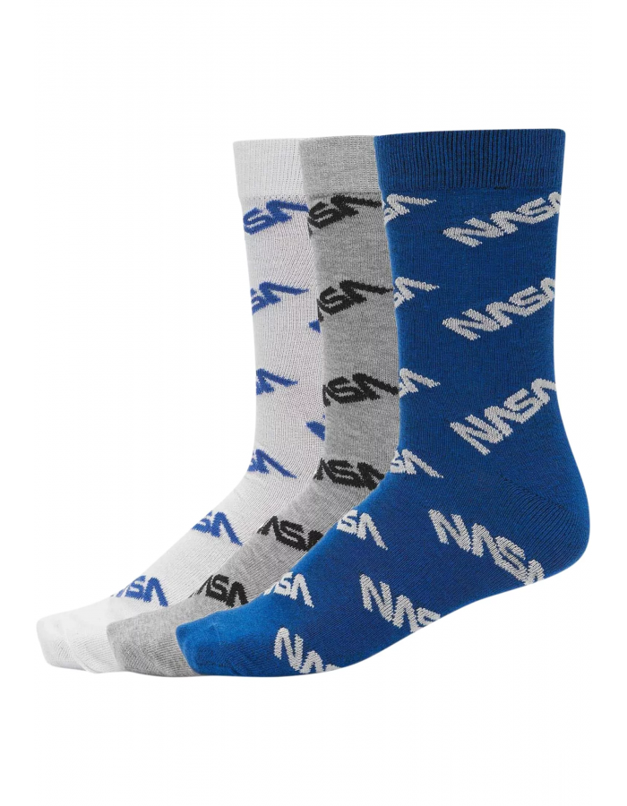 Maximální styl NASA zaručen: tyto aerodynamické punčochy v hodnotném balení po třech zobrazují nápisy s logem vesmírné agentury jako diagonální celoplošný tisk, zatímco základní design staví na skromných barvách modré, šedé a bílé. K dokončení designu byl přidán nejvyšší komfort nošení ve formě a materiálu. Tyto pánské ponožky jsou vyrobeny z dobře vyladěné směsi bavlny a spandexu. Sedí pohodlně vysoko po lýtka a mají tenké, přiléhavé manžety.