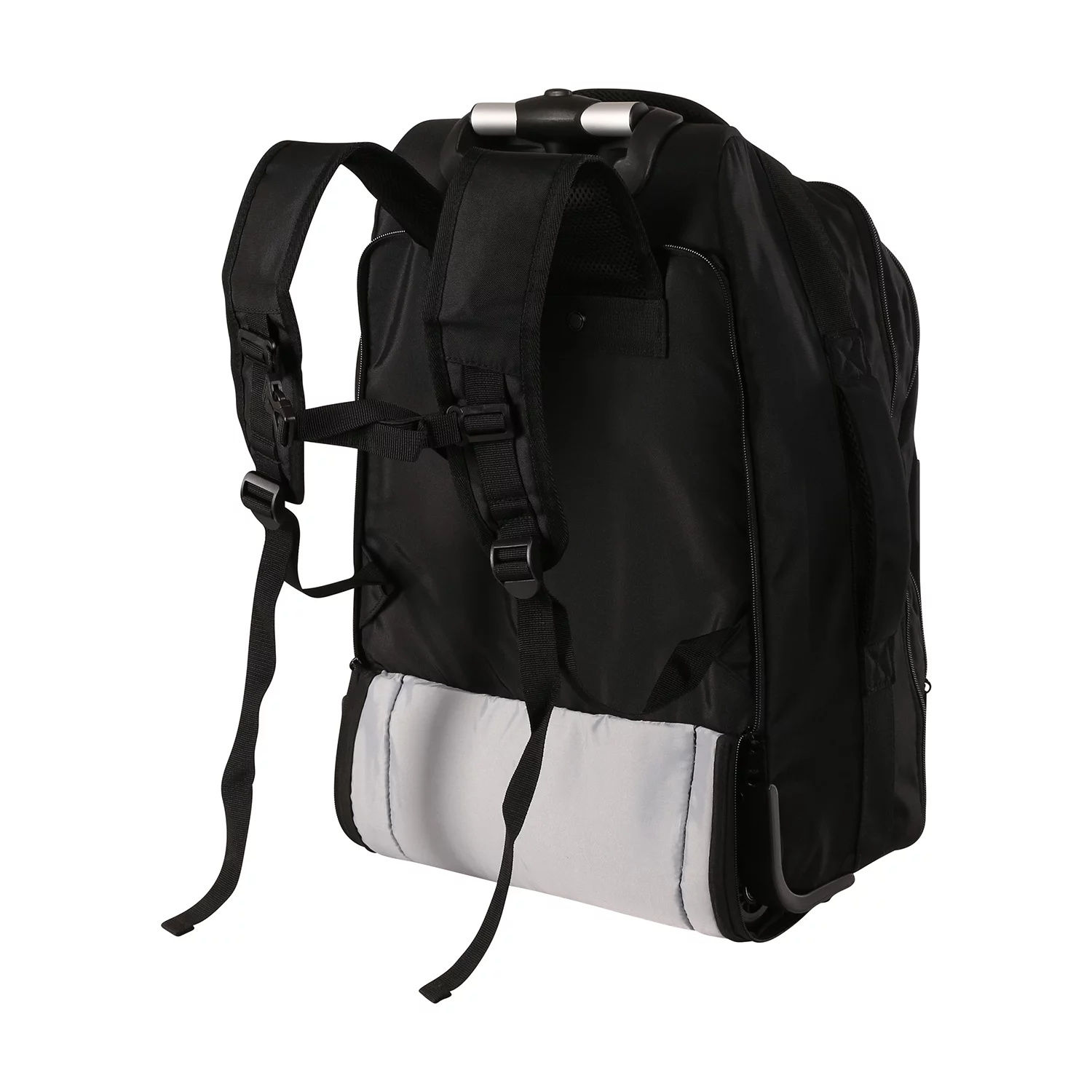 Batoh nabízí dvě prostorné hlavní komory a vnitřní kompresní popruhy, které udrží obsah bezpečně na místě i při pohybu. Díky výsuvné rukojeti a kvalitním kolečkům se snadno převáží jako kufr, ale pokud potřebujete volné ruce, jednoduše využijete ramenní popruhy a nosíte ho jako klasický batoh.
