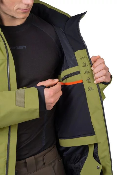 Technický střih lyžařské bundy je ideální pro lyžaře kombinující sjezdovku a volný terén poblíž lanovky. Membrána Climatic Active s parametry 20 000mm vodní sloupec a 20 000 prodyšnost tě spolehlivě ochrání proti promoknutí při zachování vysoké prodyšnosti. O tepelnou izolaci se stará špičková výplň Primaloft Silver, která má k poměru nízké gramáže vysokou hřejivost. Bunda je vyladěná ve všech detailech. Od kompletně voděodolných YKK zipů, přes lepené rukávové patky a kšilt, anatomicky tvarované rukávy s vnitřní elastickou rukávovou manžetou s otvorem na palec, Recco pasivní záchranný lavinový systém, sněhový límec v pase, vnitřní systém kapes, až po vnitřní zateplený límec. Technologickým benefitem je použitý systém efektivního zateplení, které je aplikované v trupu, horní části rukávů, ramen a límci, spodní část rukávů a dolní část trupu je bez zateplení. V bundě tak pocítíte mnohem větší pohyblivost, celkovou lehkost, ale díky kvalitní Primaloft výplni zůstanete v komfortu. Systém propojení bundy a kalhot umožňuje snadné připnutí lyžařských kalhot Hannah Wiel. Bunda má strečový materiál, který zvyšuje komfort při nošení a svobodu pohybu.