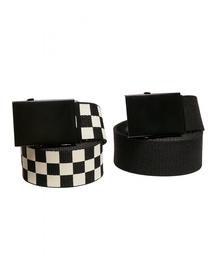 Check And Solid Canvas Belt 2-Pack black/offwhite S/M