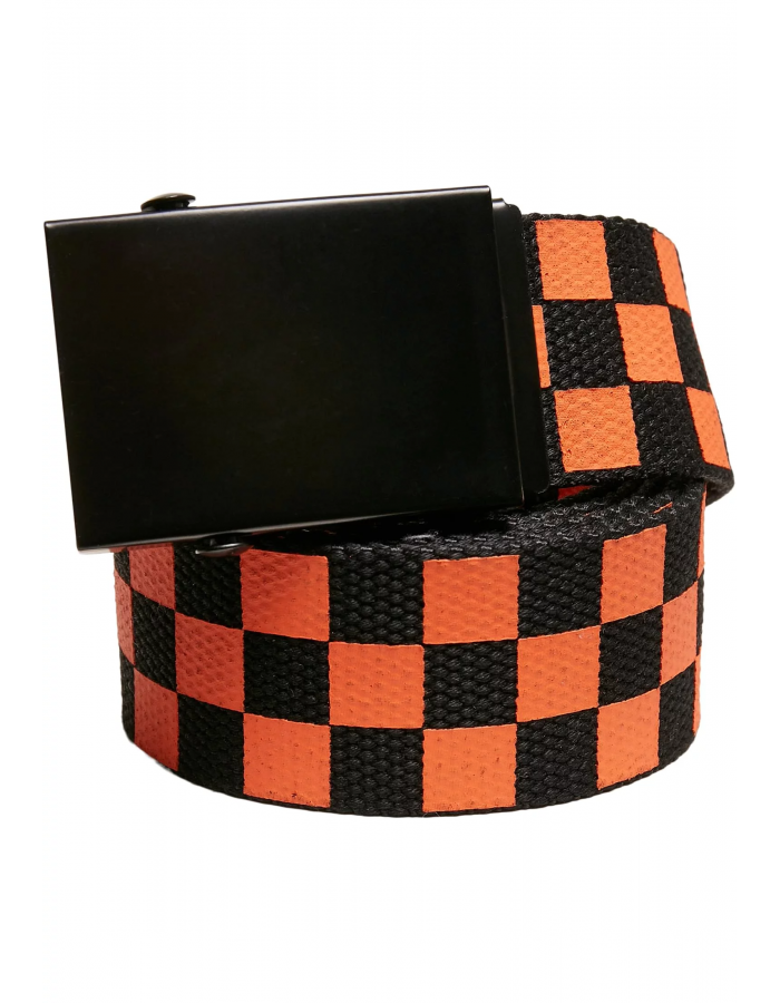 Sada dvou plátěných pásů obsahuje jeden jednobarevný pás a jeden pás s průběžným šachovnicovým vzorem. Pásy jsou vyrobeny z pevného polyesteru a jsou 3,8 cm široké a 115 / 135 cm dlouhé. Zapínají se pohybem zápěstí pomocí kovové spony.