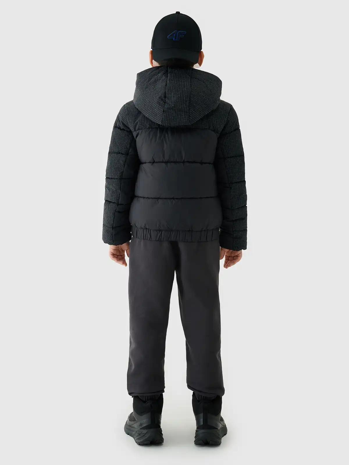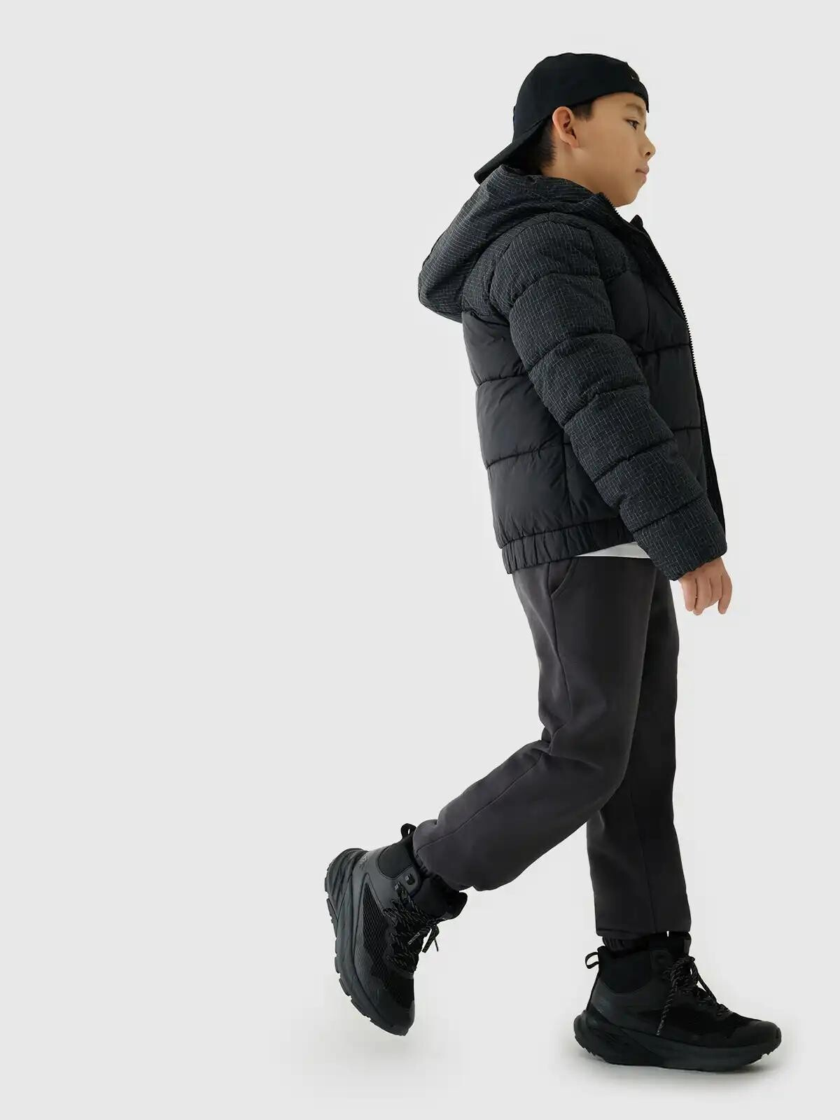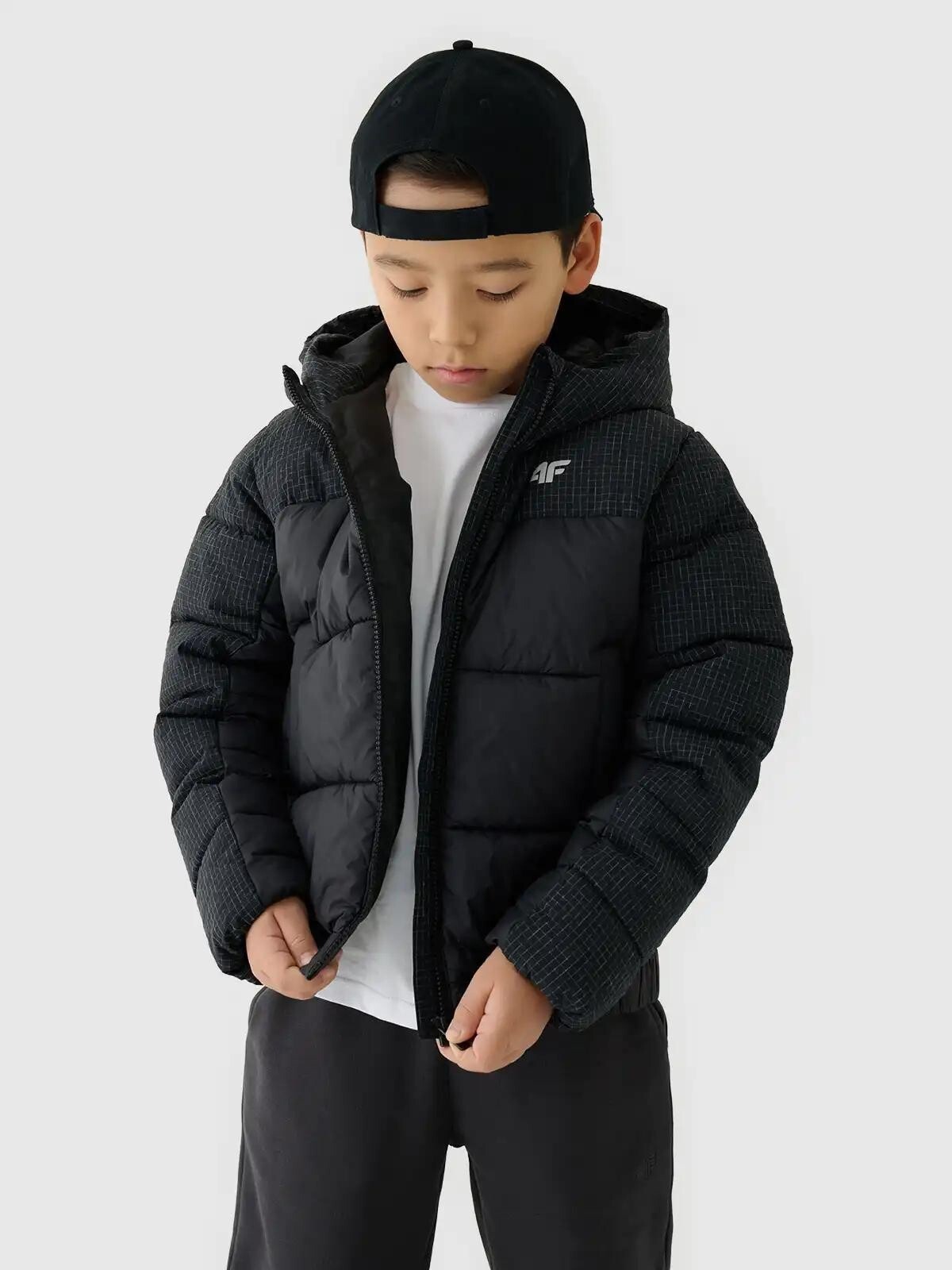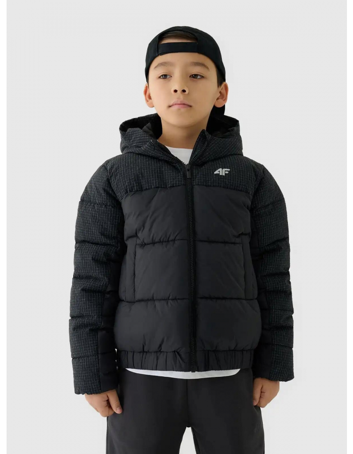 Chlapecká bunda 4F vyniká moderním designem s prošíváním a kontrastními detaily, díky čemuž se snadno kombinuje s dalšími kousky zimního šatníku.