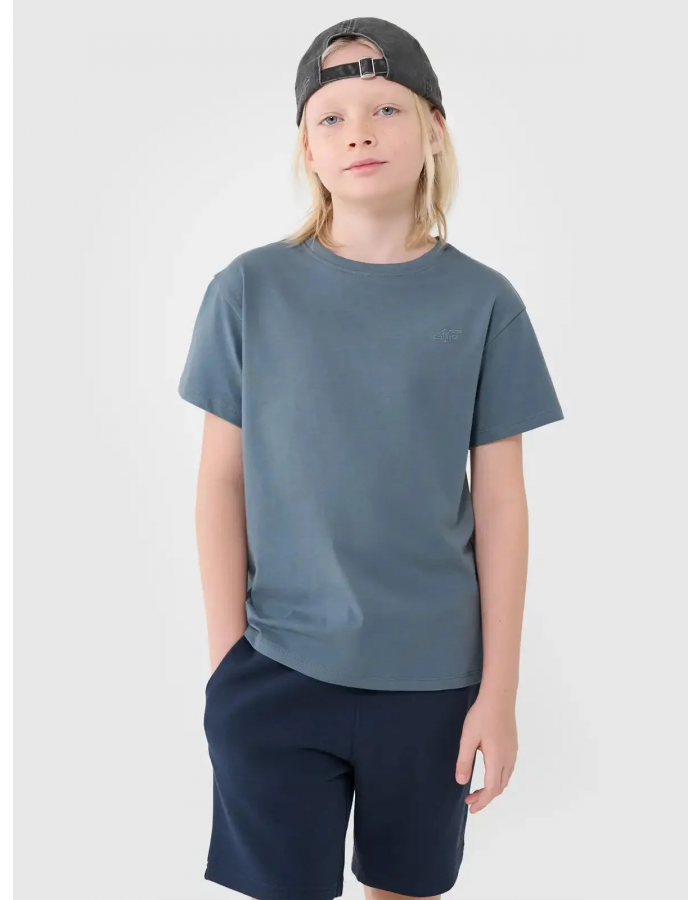 Chlapecké tričko 4F je vyrobeno ze 100% bavlny, díky čemuž je měkké, odolné a příjemné na dotek. Kulatý výstřih je zakončen mírným žebrováním.