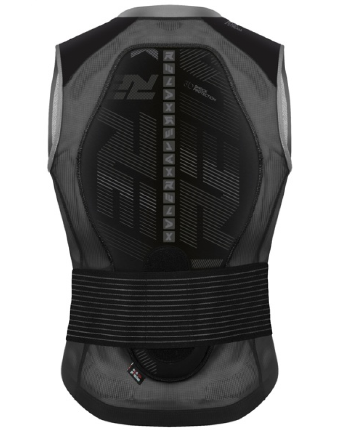 Inovovaný chránič páteře integrovaný do maximálně odvětrané pohodlné vesty. Patentově chráněný inteligentní materiál 3D SHOCK PROTECTION vyniká svojí flexibilitou a schopností absorbovat silné nárazy. Pružný měkký materiál chrániče se dokonale přizpůsobí tvaru těla za každých okolností bez omezení pohybu. Při nárazu dochází k okamžitému ztuhnutí materiálu a absorbci nárazové energie, což představuje doposud nejúčinější způsob ochrany. Široký bederní popruh PRO BELT umístěný zvenčí vesty tělo pevně obejme, stane se vaší součástí a napomáhá ke správné ergonomii. Masivní ventilační kanály AIR STREAM zajistí dokonalé odvětrání i při vysoké intenzitě fyzické aktivity.