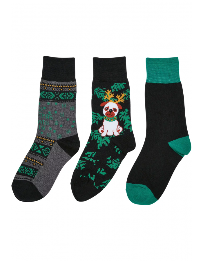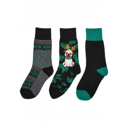 Sada dětských ponožek tři v jednom potěší originálními vánočními vzory, jako je mopsík se sobími parohy a také vánoční vzory. Dětské ponožky jsou k dispozici ve čtyřech velikostech a zahrnují tři různé designy. Látka je vyrobena z bavlny, polyesteru a elastanu a je dále vylepšena širokými, pohodlnými manžetami, které zajišťují ideální pohodlí při nošení.