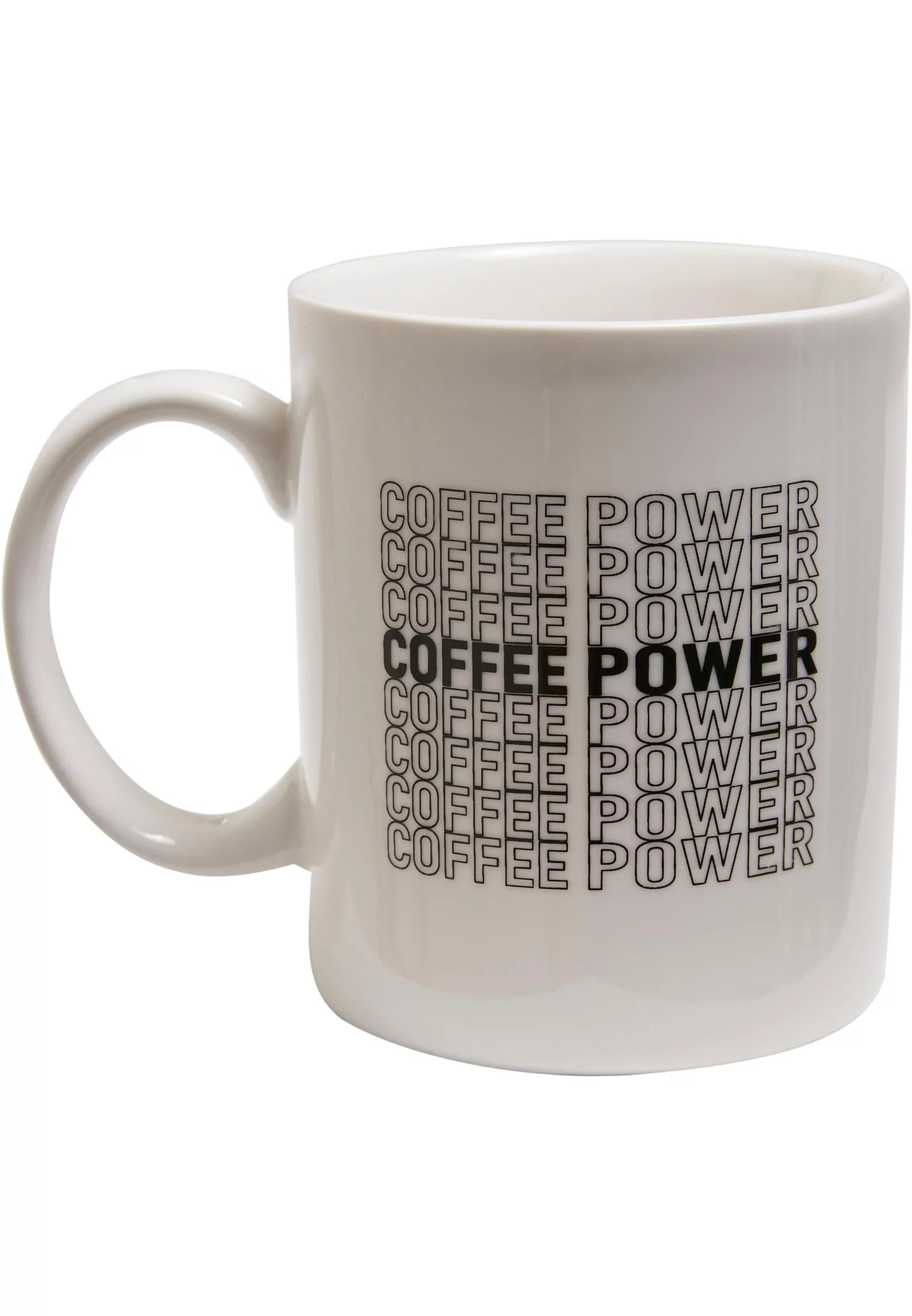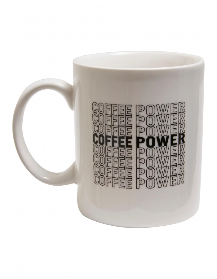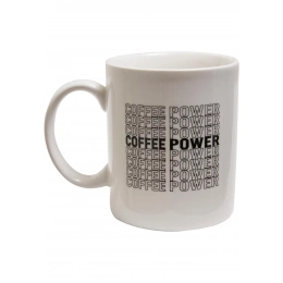 Jednobarevný keramický šálek na kávu nese osmkrát ve svislé řadě potisk „Coffee Power“. Jedno písmo je napsáno tučně, ostatní slova jsou vyznačena. Motiv se opakuje s potiskem na spodní straně šálku na kávu – ruka s šálkem na kávu a nad ní svatozář. Pohár nabízí velké a bezpečné ucho.