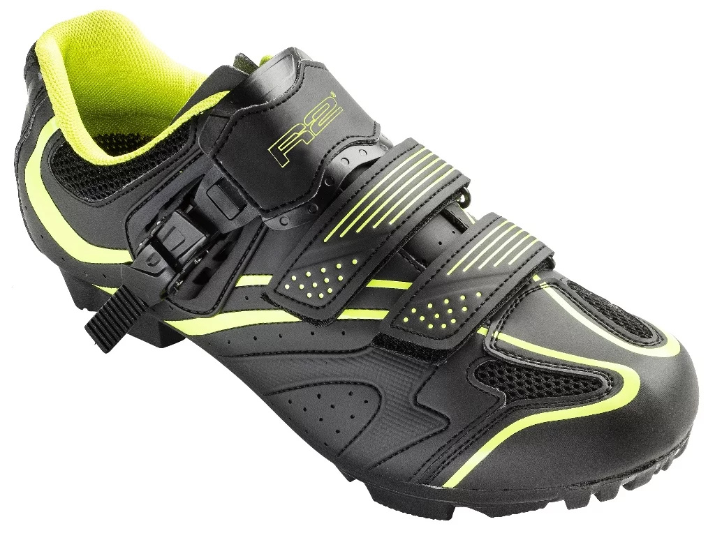 Sportovní MTB tretry musí splňovat několik zásadních parametrů – efektivní přenos energie do šlapání bez ztrát, dostatečnou tuhost pro lepší ovladatelnost kola a odolnost, která však nesmí být na úkor pohodlí při častém nošení. Přesně tak jsme pro vás navrhli R2 NAOS. Jsou vybaveny pevnou nylonovou podrážkou doplněnou gumovým vzorkem pro lepší přilnavost při chůzi na kluzkém povrchu a spolehlivými přezkami na suchý zip, které umožňují přesné a pohodlné utažení na noze.