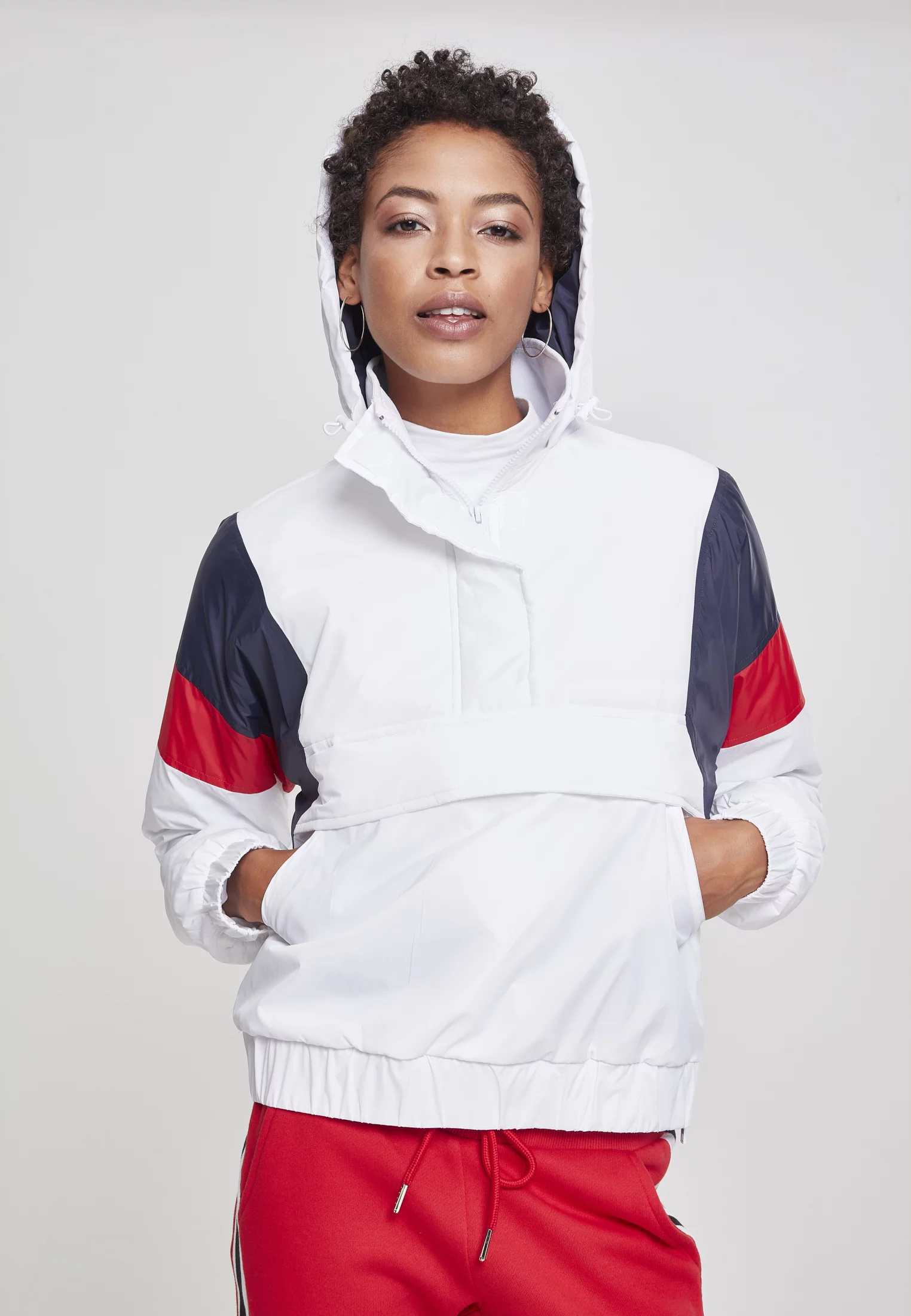 Dámská 3-tónová vycpaná přetahovací bunda bílá/námořnická/ohnivá červená Grösse: M