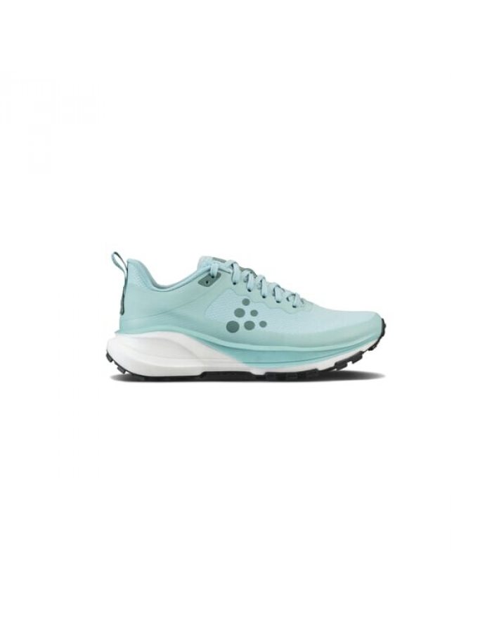 Trailová běžecká bota CRAFT Pure Trail X je vybavena Cr Foam™ (pěnou) v mezipodešvi, která poskytuje vysokou míru tlumení, stabilitu, výbušný odraz a to vše se sníženou hmotností. Pod střední a přední částí chodidla je rock plate, který zvyšuje stabilitu a ochranu chodila. Podešev se středně vysokým vzorkem spolehlivě zdolává i náročnější terén bez ztráty trakce. Svrchní materiál je vyroben z recyklovaného polyesteru a má ripstopovou úpravu pro zvýšení odolnosti proti roztržení. Ještě větší odolnost přináší okop boty s TPU.