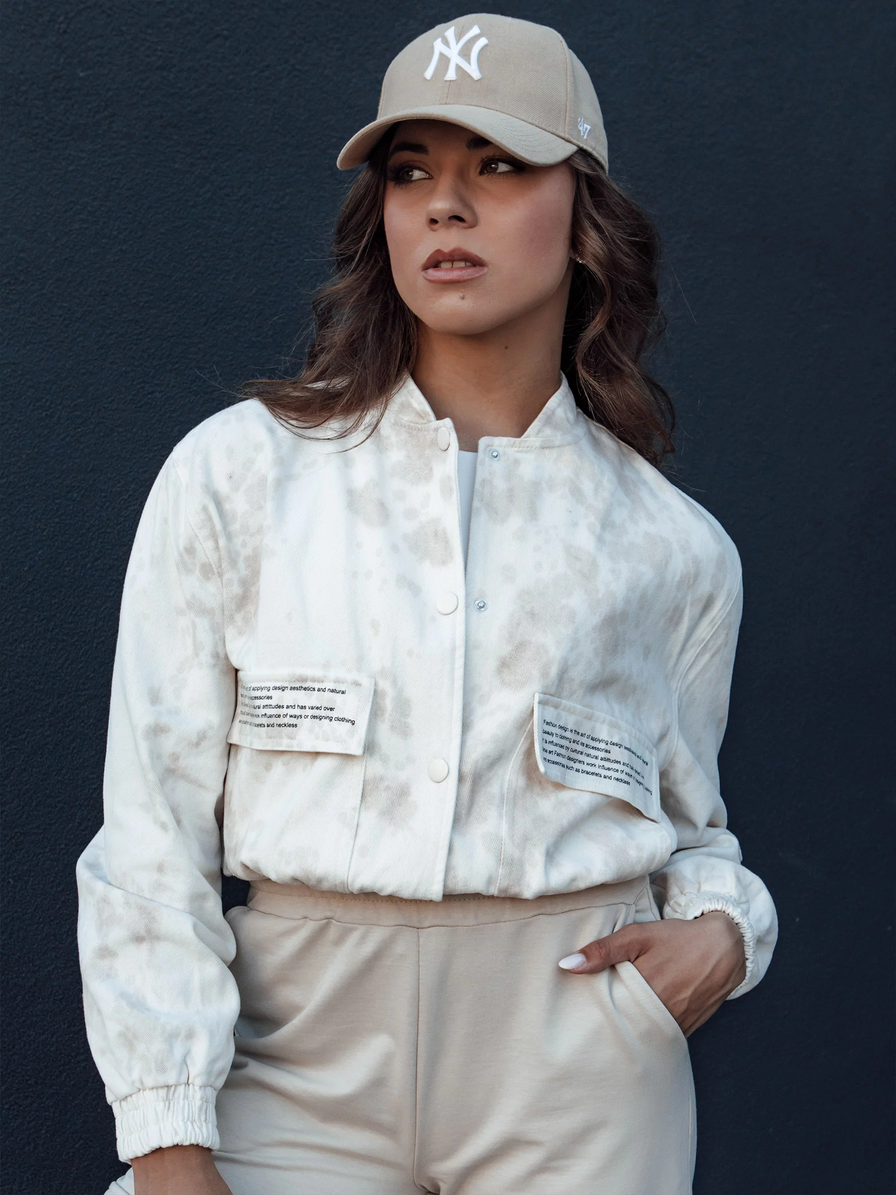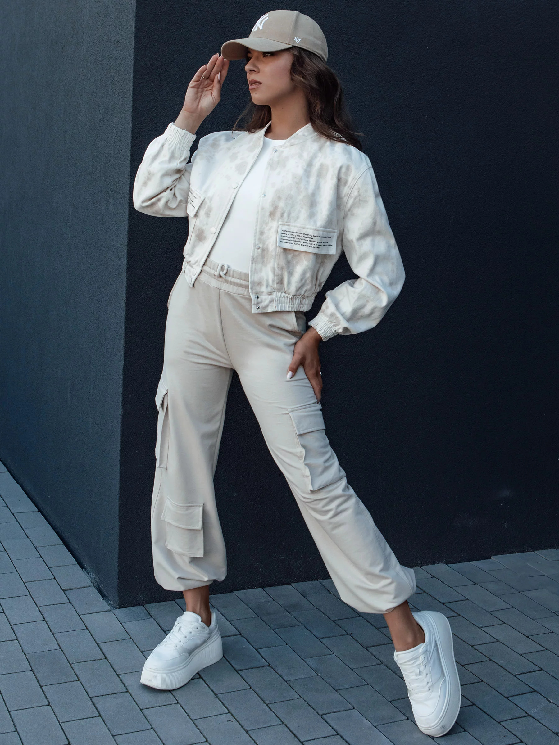 Bomber bunda SERRO dodává každému dni výjimečný charakter. Díky pohodlnému střihu, praktickému stojáčku a prostorným kapsám ozdobeným stylovými nápisy, tato bunda spojuje módní vzhled s funkčností. Funkční stahovací šňůrky a elegantní zapínání na druky jí dodávají moderní kouzlo. Ideální pro aktivní ženu, která si cení stylu a pohodlí. Vyjádři se s bomberou SERRO a užívej si pohodlí a jedinečný vzhled, kamkoli jdeš.