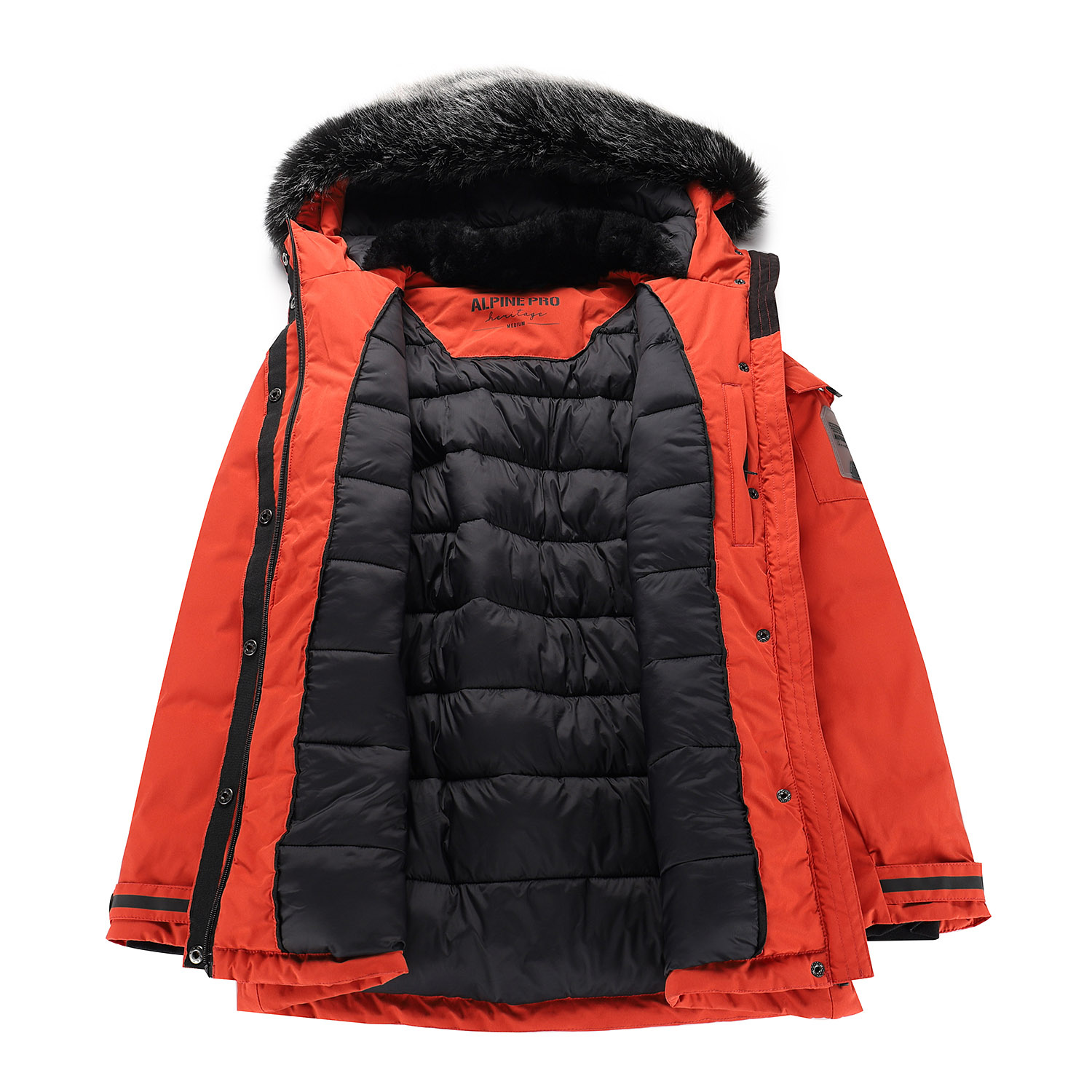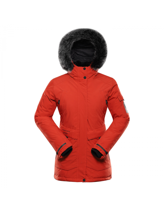Materiál bundy má parametry vodního sloupce 5 000 mm a paropropustnost 5 000 g/m²/24 hodin. Bunda je vybavena pevnou kapucí s odepínatelnou kožešinou a reflexními prvky pro lepší viditelnost. Na bundě nechybí ani logo ALPINE PRO.