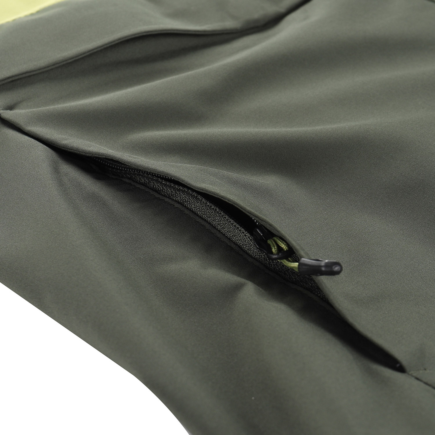 Díky kombinaci vodoodpudivého, nepromokavého, prodyšného, větruodolného a pružného materiálu s úpravou DWR a membránou PTX (vodní sloupec 15 000 mm, paropropustnost 15 000 g/m2/24 h) poskytuje maximální ochranu před deštěm i větrem a zároveň účinně odvádí vlhkost od těla.