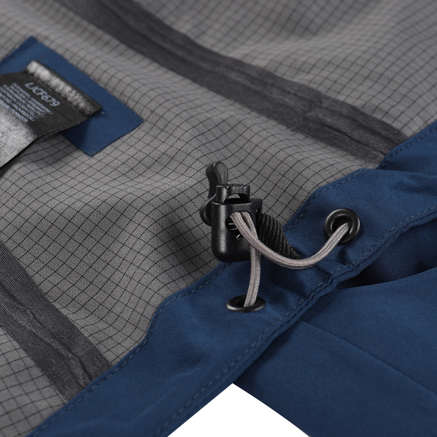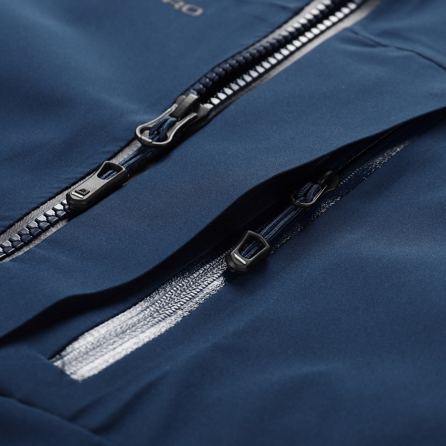 Střih je polopřiléhavý a anatomicky tvarovaný s tvarovanými rukávy, takže zaručuje volnost pohybu i komfort během celodenního nošení. Podlepené švy a pevná kapuce se stahováním zvyšují odolnost vůči nepřízni počasí. Při vyšší aktivitě oceníte odvětrávání v podpaží s voděodolnými zipy. Spodní okraj je vzadu prodloužený a snadno nastavitelný pomocí stahovací gumičky. Hlavní zip je voděodolný a u brady opatřen krytkou z hřejivého materiálu. Rukávy lze upravit manžetou se suchým zipem. Praktických pět kapes – včetně náprsní a vnitřní na zip – poskytne dostatek prostoru pro vše potřebné. Atraktivní design podtrhuje moderní silikonový potisk na předním dílu a kapuci, nášivka na rukávu a delší taháčky zipů pro pohodlnou manipulaci.