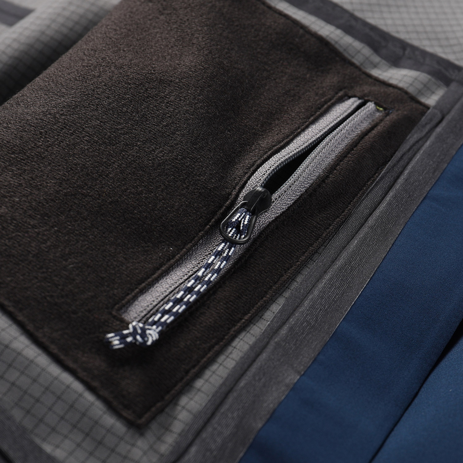 Díky kombinaci vodoodpudivého, nepromokavého, prodyšného, větruodolného a pružného materiálu s úpravou DWR a membránou PTX (vodní sloupec 15 000 mm, paropropustnost 15 000 g/m2/24 h) poskytuje maximální ochranu před deštěm i větrem a zároveň účinně odvádí vlhkost od těla.
