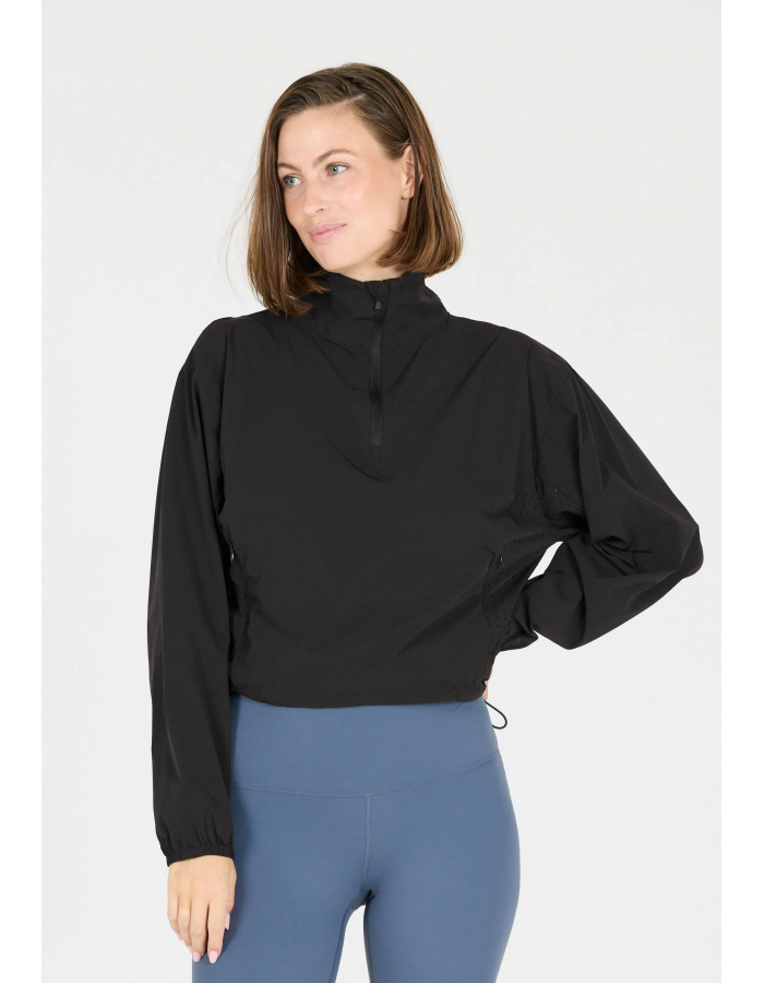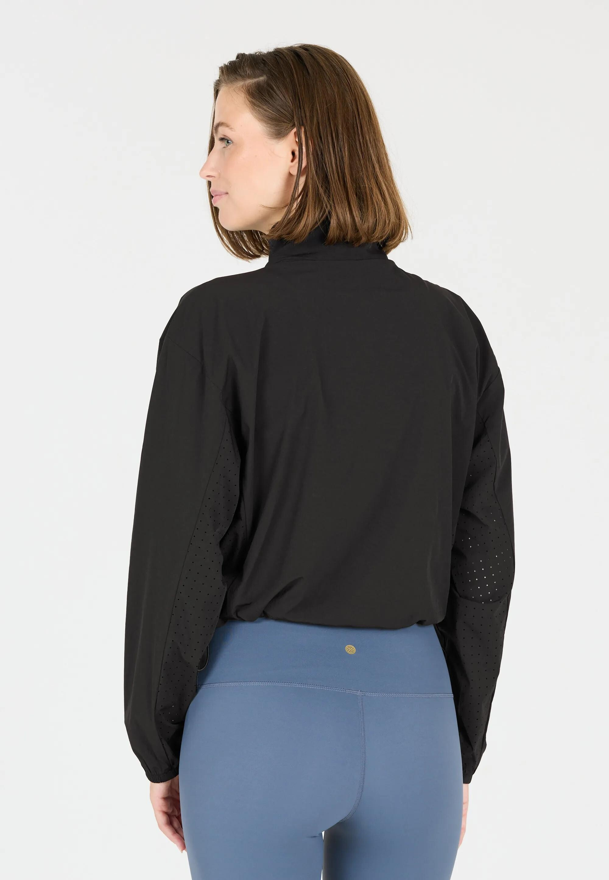 Dámská sportovní bunda nabízí moderní vzhled v kombinaci s funkčními prvky ideálními pro aktivní životní styl. Díky lehkému, větruodolnému materiálu a volnému střihu se skvěle hodí na běh, trénink i volnočasové nošení. Bunda má krátký zip na hrudi pro snadné oblékání a regulaci odvětrávání. Prodyšné perforace v oblasti boků a podpaží zajišťují lepší cirkulaci vzduchu. Elastické manžety drží rukávy na místě a dolní lem lze individuálně upravit pomocí stahovací šňůrky.