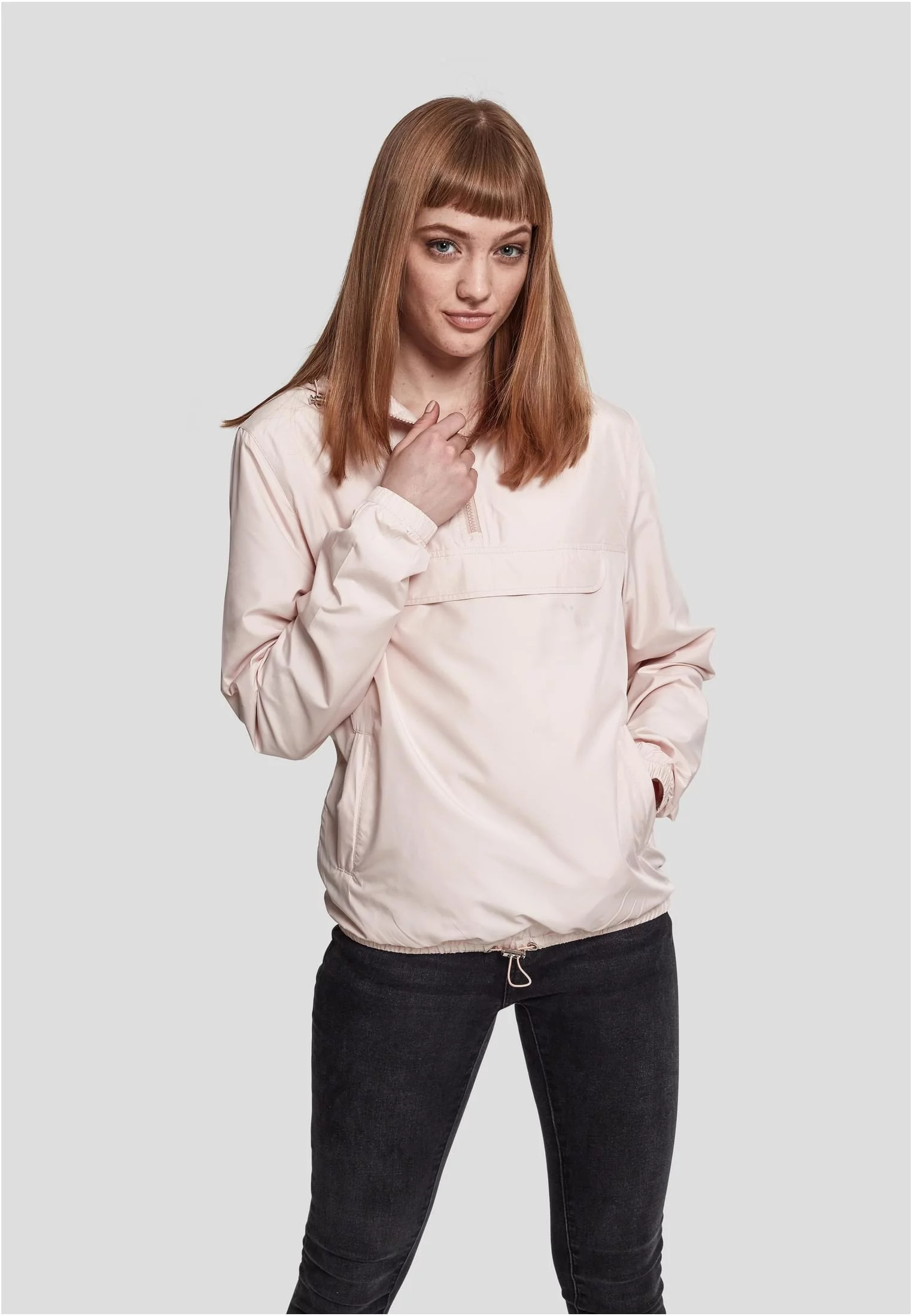 Zahal se a jdi: Dámský pulovr Basic je praktický, lehký a pohodlný a má všechny typické detaily větrovky – autentický základ od kapuce s vysokým krkem s elastickou šňůrkou až po širokou ozdobnou přední kapsu a elastické šňůrky v pase.