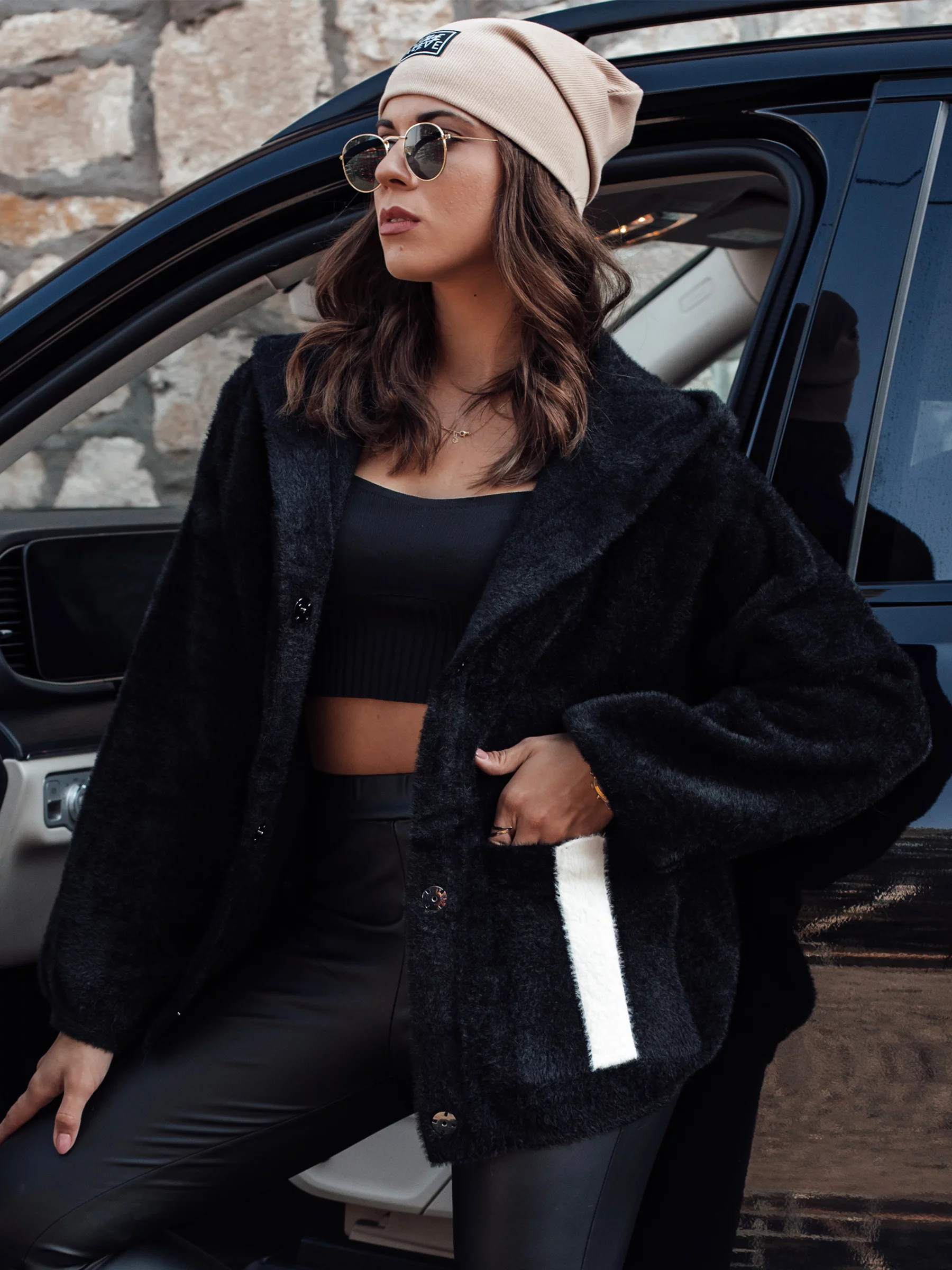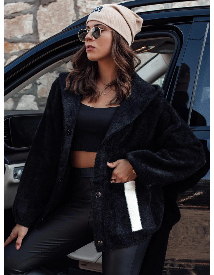 Stylový kardigan ideální na chladnější dny. S kapucí a kontrastními kapsami, které dodávají jedinečný charakter. Dokonale se hodí k legínám nebo džínům, vytváří módní ležérní vzhled. Komfortní střih umožňuje volnost pohybu a příjemný materiál zajišťuje teplo. Ideální volba pro každodenní vycházky a víkendové procházky.