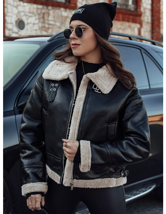 Dámská bunda SHEREB kožená s kožíškem černá Dstreet TY4756 S