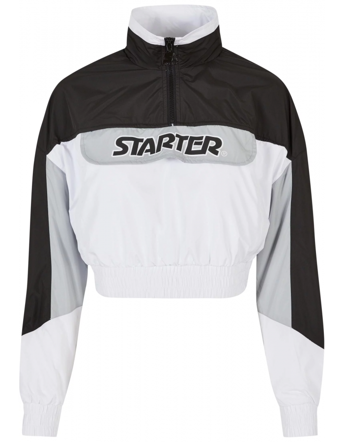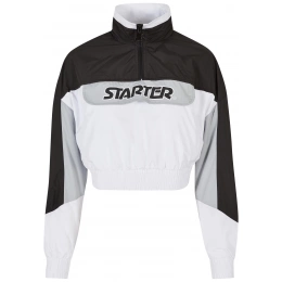 Tato dámská větrovka v tříbarevném barevném provedení je spolehlivým společníkem do chladných a větrných dnů a nabízí chytrý krátký střih. Stylový lem s potiskem Starter na hrudi a vyšívaným logem na rukávu. Dále dámská bunda nabízí krátký stojáček na zip a ramínko na zip Starter. Manžety na rukávech a lemu jsou široké a elastické. Dvě praktické boční kapsy na zip ponechávají prostor pro ruce a nezbytnosti. Díky materiálu z terylenu a polyesteru je bunda pohodlná na nošení, použité barvy dodávají bundě strukturu.