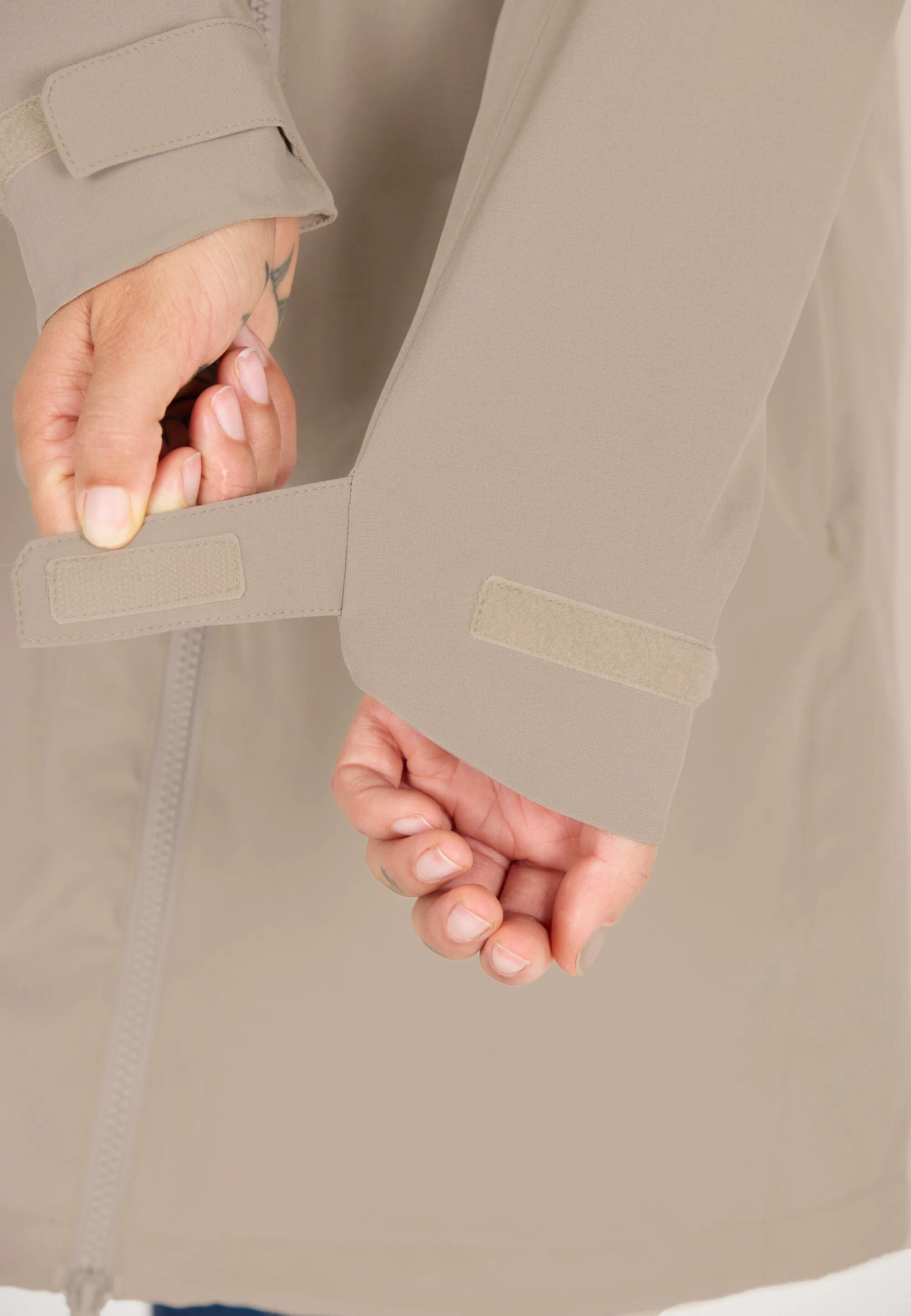 Bunda má plně nastavitelnou kapuci, celopropínací zip s ochranou proti větru a praktické kapsy na zip pro bezpečné uložení drobností.
