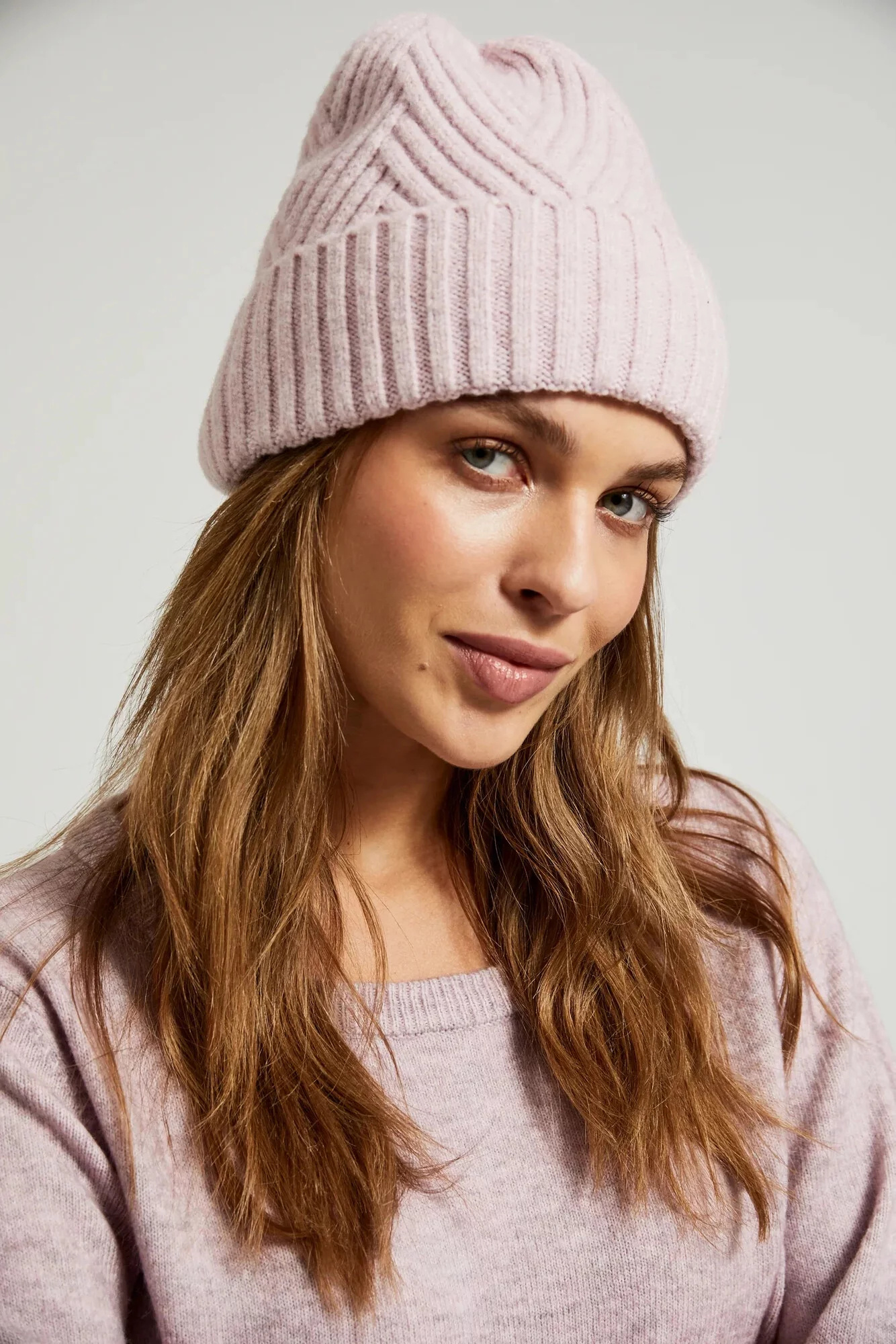 58%POLYESTER 30%AKRYL 10%VLNA 2%ELASTAN Dámská čepice v růžové barvě je ideálním doplňkem outfitu na chladnější dny. Vyrobena z vysoce kvalitního materiálu se strukturovaným copánkovým vzorem, zajišťuje teplo a pohodlí při nošení. Žebrovaná pletenina a ohrnutý lem jí dodávají eleganci a jedinečný charakter. Tato čepice bude ideálním doplňkem k běžným, neformálním stylizacím na podzim a zimu. Skvěle se hodí jak v kombinaci s prošívanou bundou, tak s oversized svetrem.