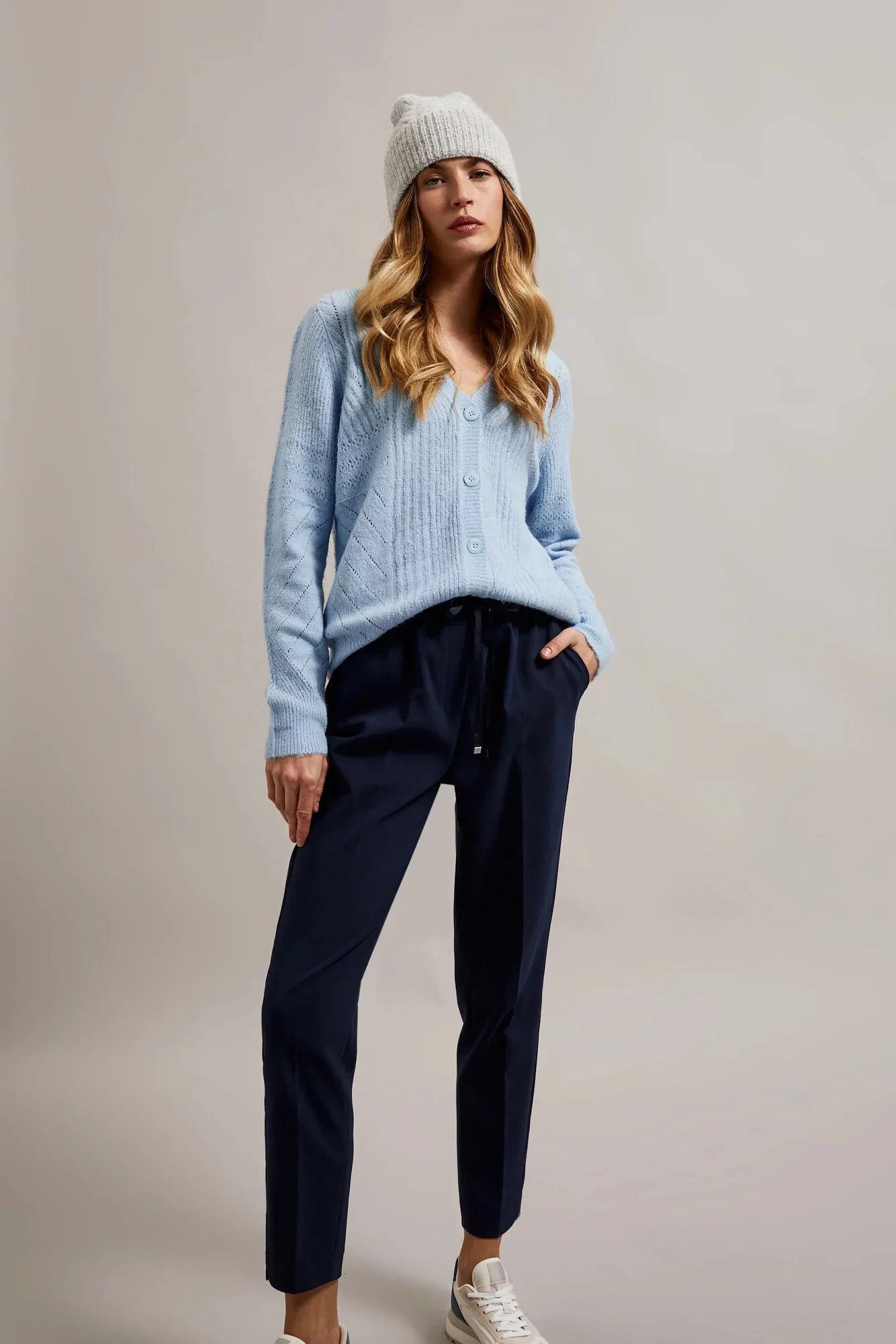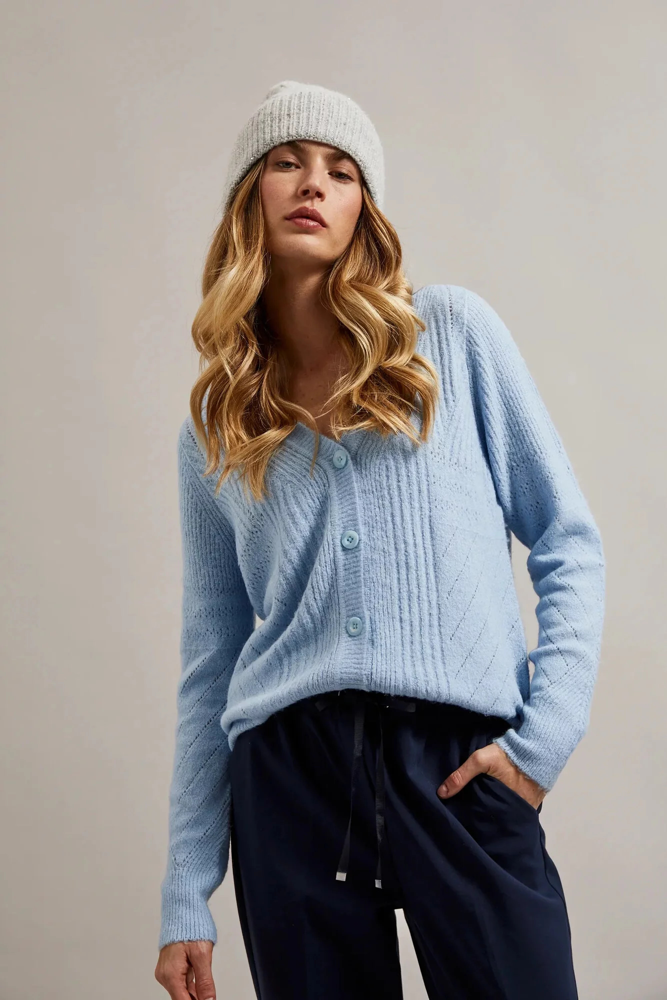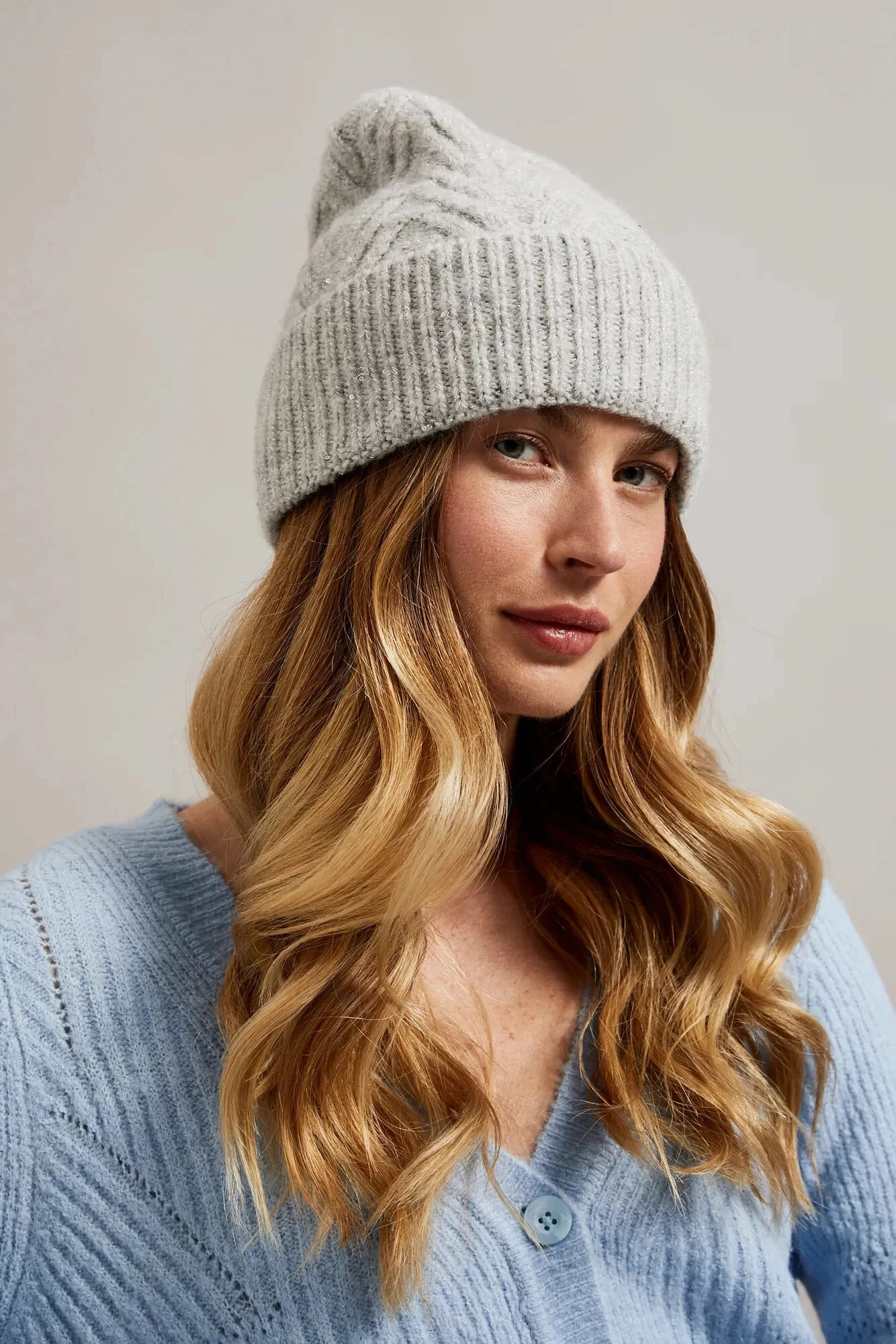 55% AKRYL 37% POLYESTER 5% VLNA 3% ELASTAN Dámská čepice v šedé barvě s netypickým vzorem, ideální na chladnější dny. Vyrobena z akrylu, ozdobena flitry a copánkovým vzorem. Žebrovaná pletenina zajišťuje teplo a pohodlí při nošení. Dodatečně ozdobená bambulkou, která přidává na půvabu.