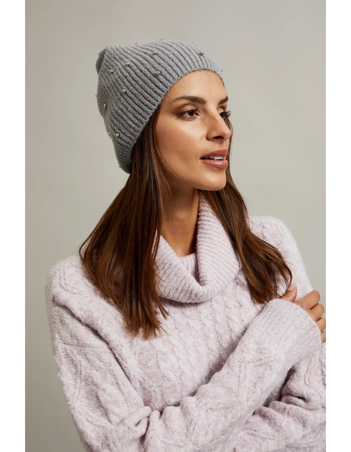 Dámská čepice Moodo žebrovaná s perlami - šedá