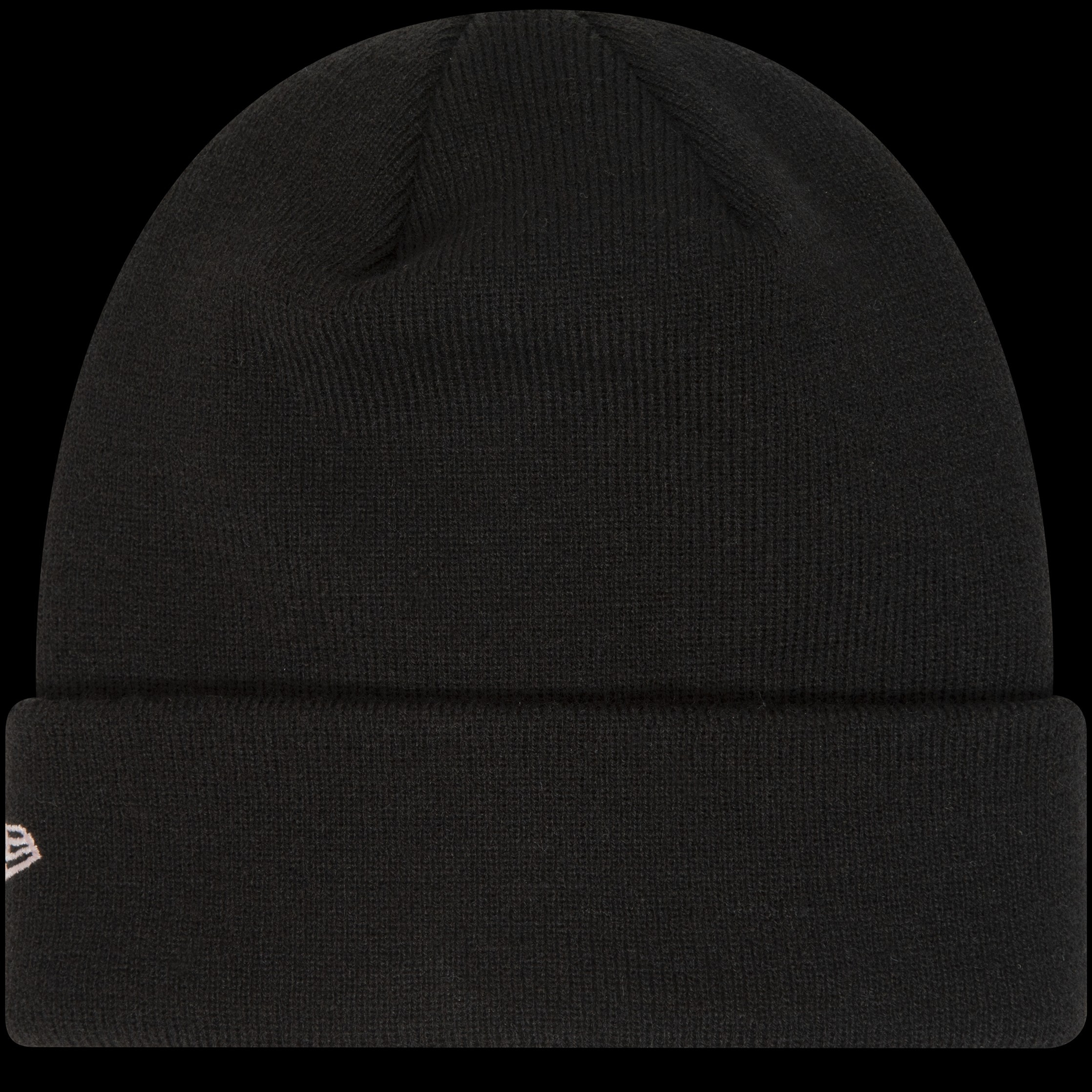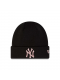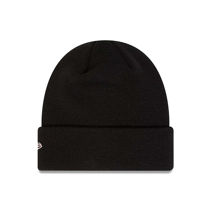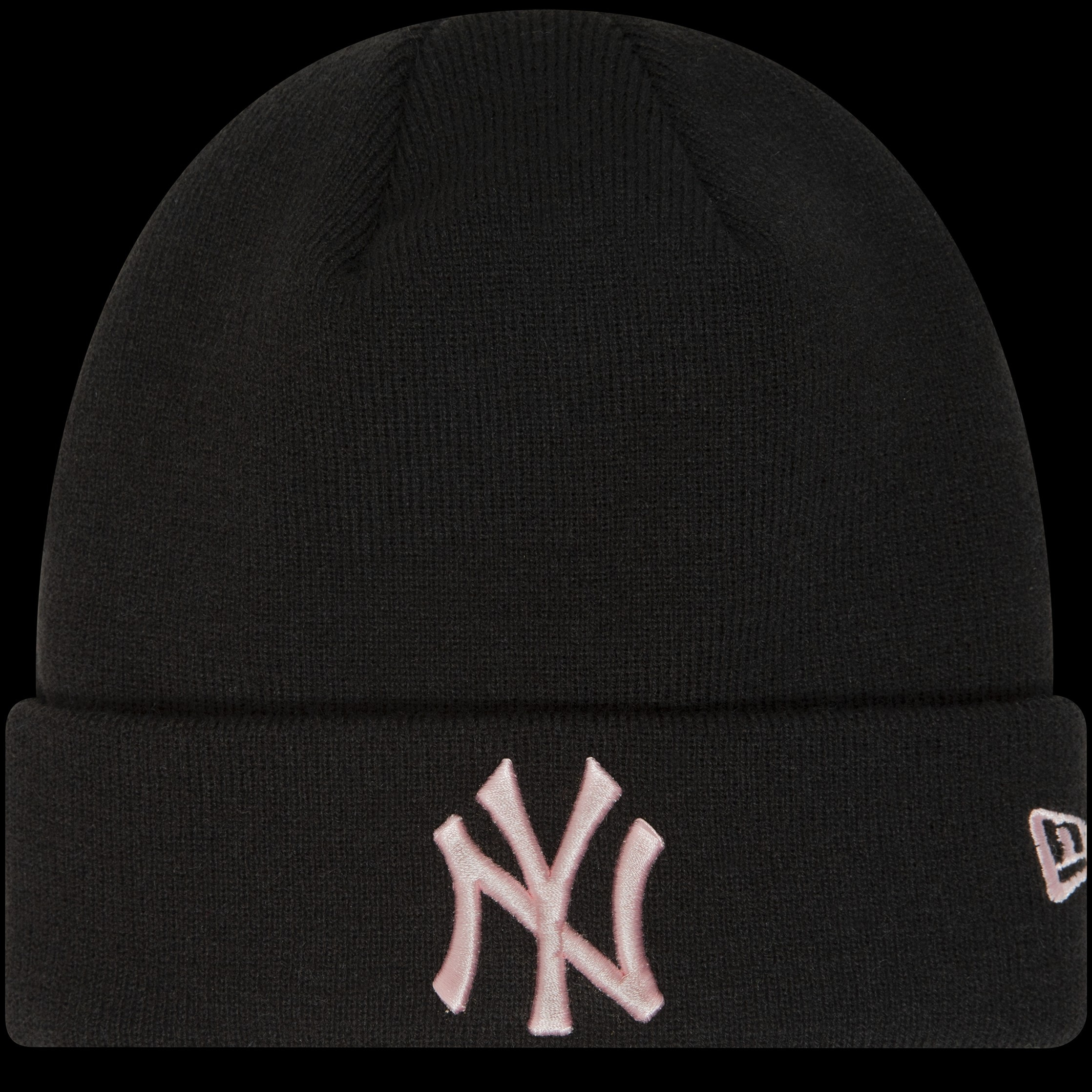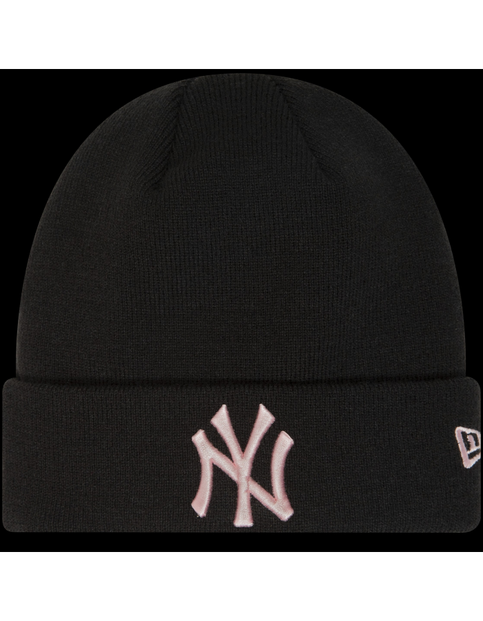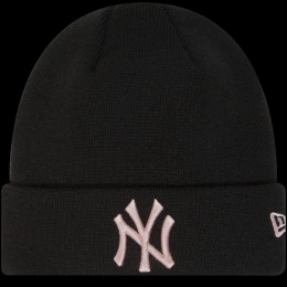 Stylová a hřejivá dámská pletená čepice značky New Era s ohrnutým lemem, zdobená světle růžovým logem New York Yankees.