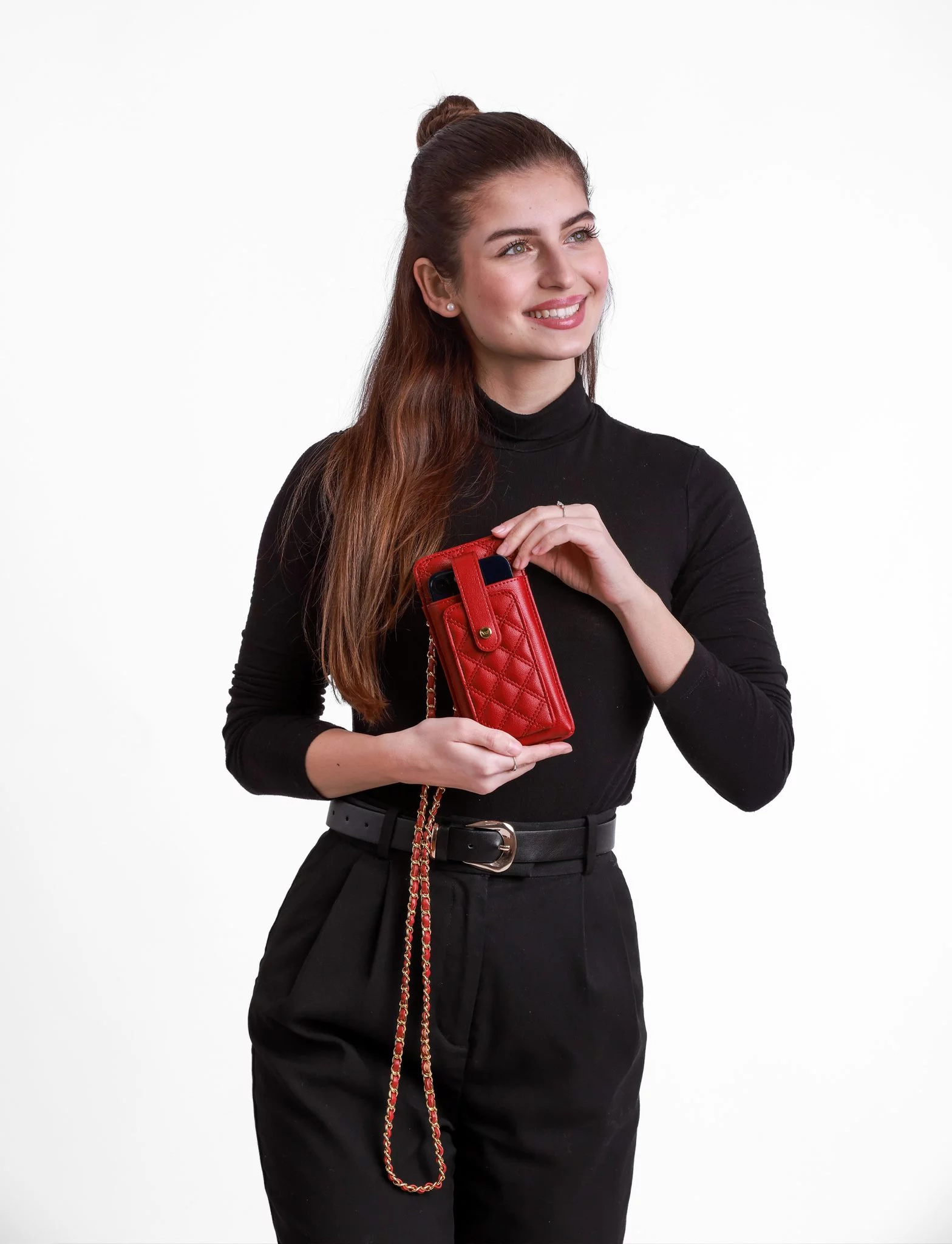 Delta je stylová crossbody peněženka, která Ti usnadní život a zároveň skvěle doplní Tvůj outfit. Díky prošívanému povrchu a kovovému řetízku s PU páskem působí elegantně a nadčasově. Přední kapsa se postará o mobil a karty, zatímco zadní zipová přihrádka schová mince a drobnosti. Lehká, praktická a vždy po ruce, když ji nejvíc potřebuješ.