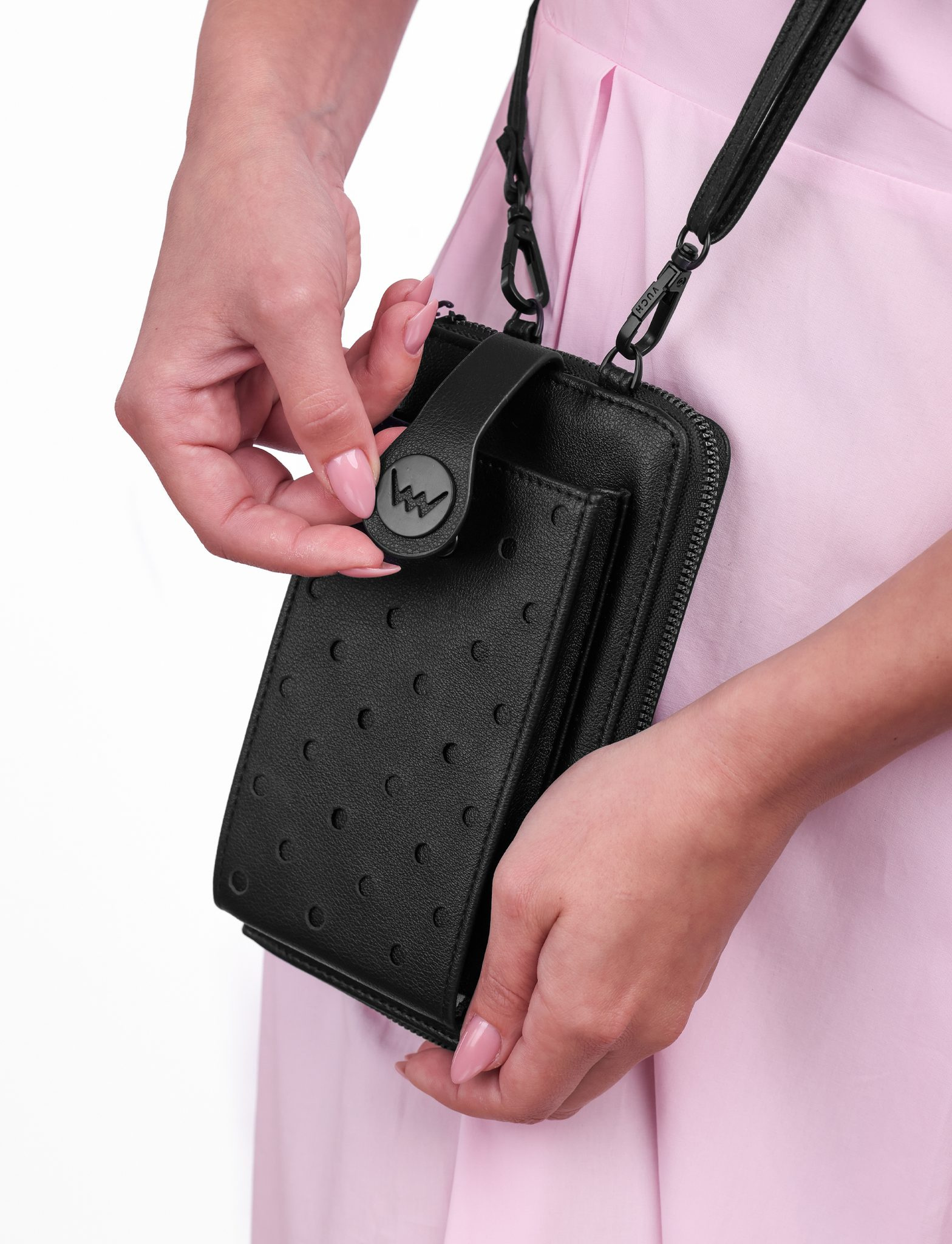 Puntíky, které si zaslouží Tvojí pozornost! Tahle crossbody peněženka je ideální, když chceš mít volné ruce, ale styl stále pod kontrolou. Vrchní část se zavírá na praktický patent a uvnitř je dost místa na karty, drobnosti i menší tajemství. Malá velikostí, velká osobností.