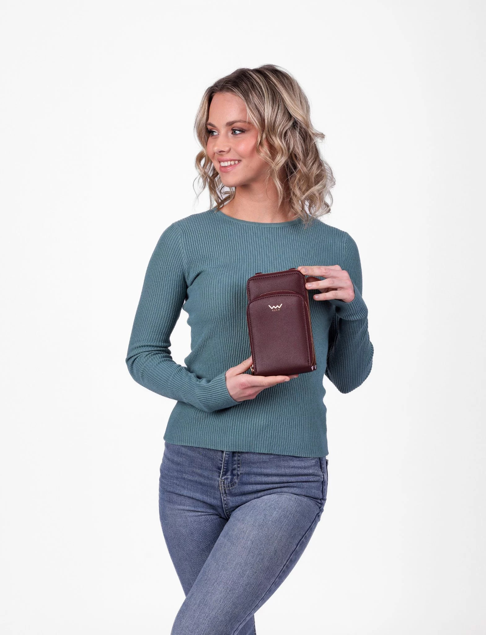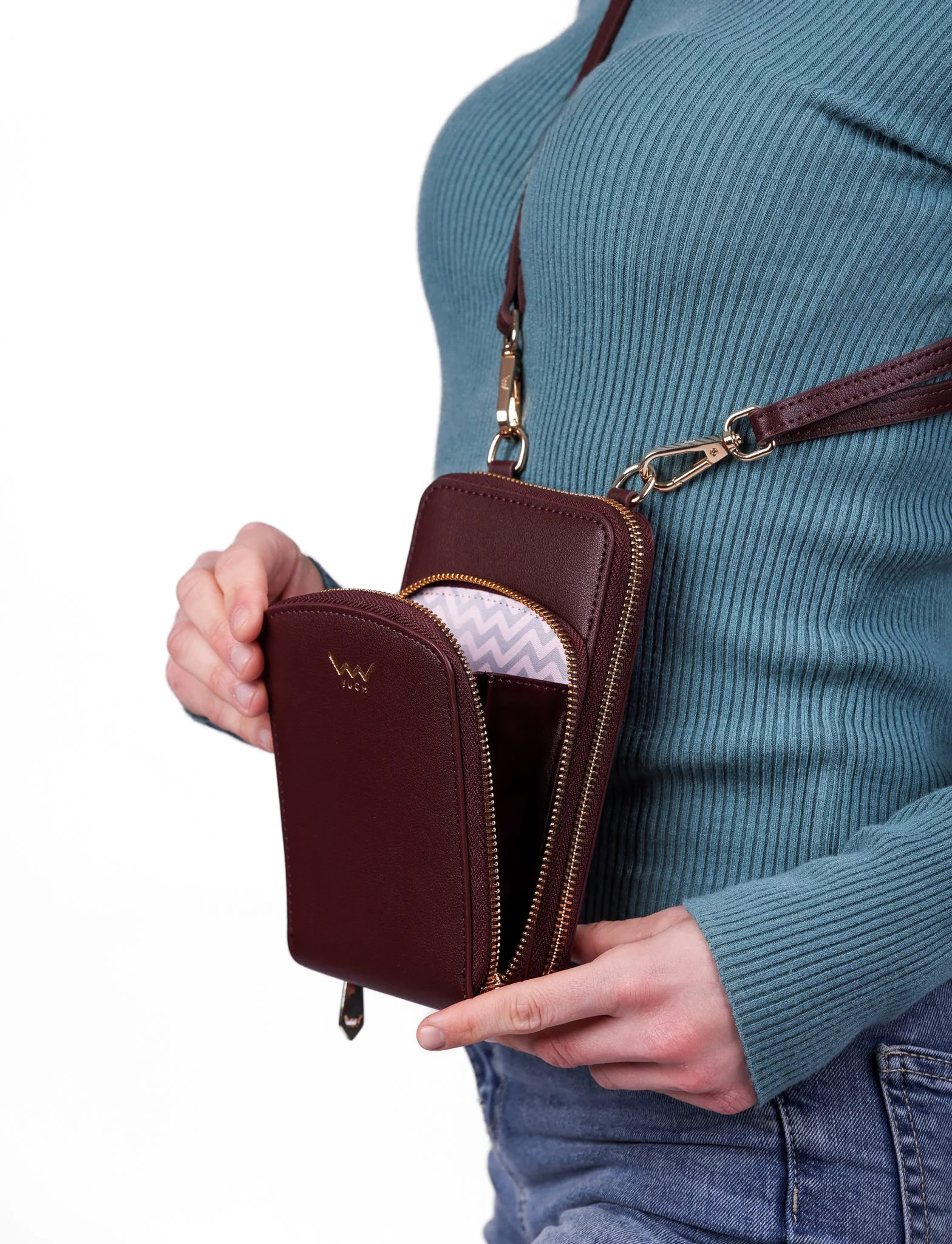 Když chceš být stylová a mít po ruce všechny nezbytnosti, přichází na scénu crossbody peněženka Rosia. Elegantní minimalistický design doplněný dvěma oddělenými kapsami pobere mobil, klíče a třeba i rtěnku. Rosia Ti přijde vhod, když nepotřebuješ velkou kabelku.
