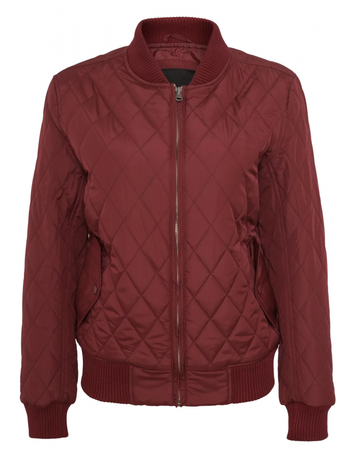 Dámská nylonová bunda Diamond Quilt od Urban Classics boduje svým žebrovaným výstřihem a otvorem na rukávech a lemu. Vnitřní podšívka je držena v oranžové barvě a na přední straně je vpravo a vlevo kapsa.