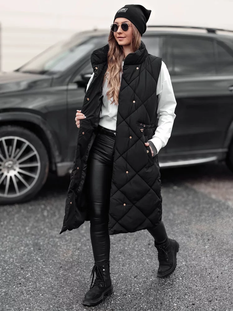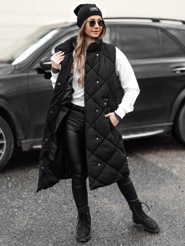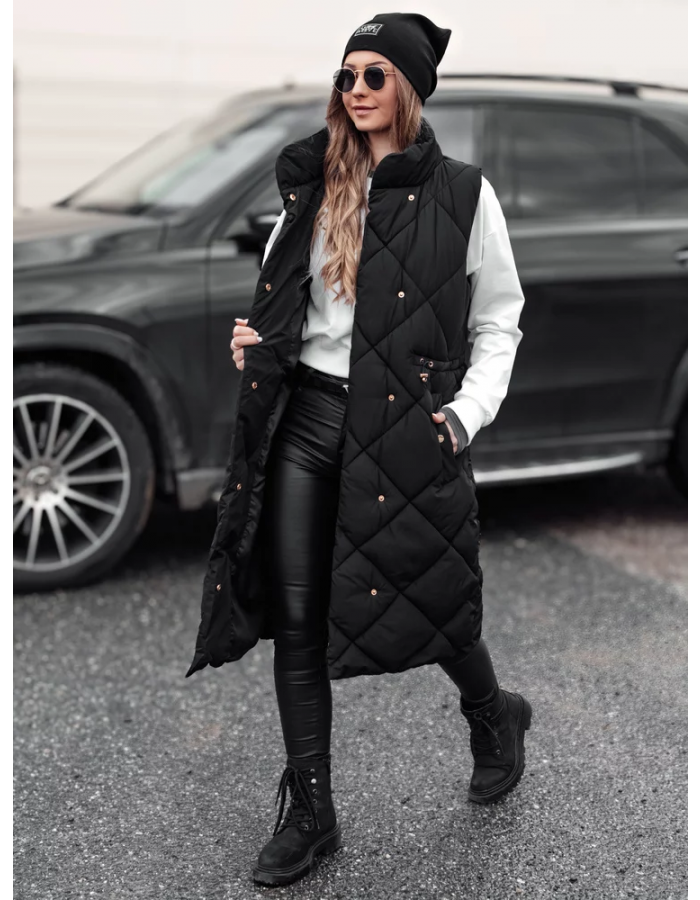 Stylová, prošívaná vesta s prodlouženým střihem je ideálním řešením pro chladné dny. Pohodlná a lehká, zajišťuje komfort a teplo. Módní detaily a univerzální design zajišťují, že se hodí jak k ležérním, tak i k elegantnějším stylizacím. Dokonalá volba pro každodenní i formálnější příležitosti.