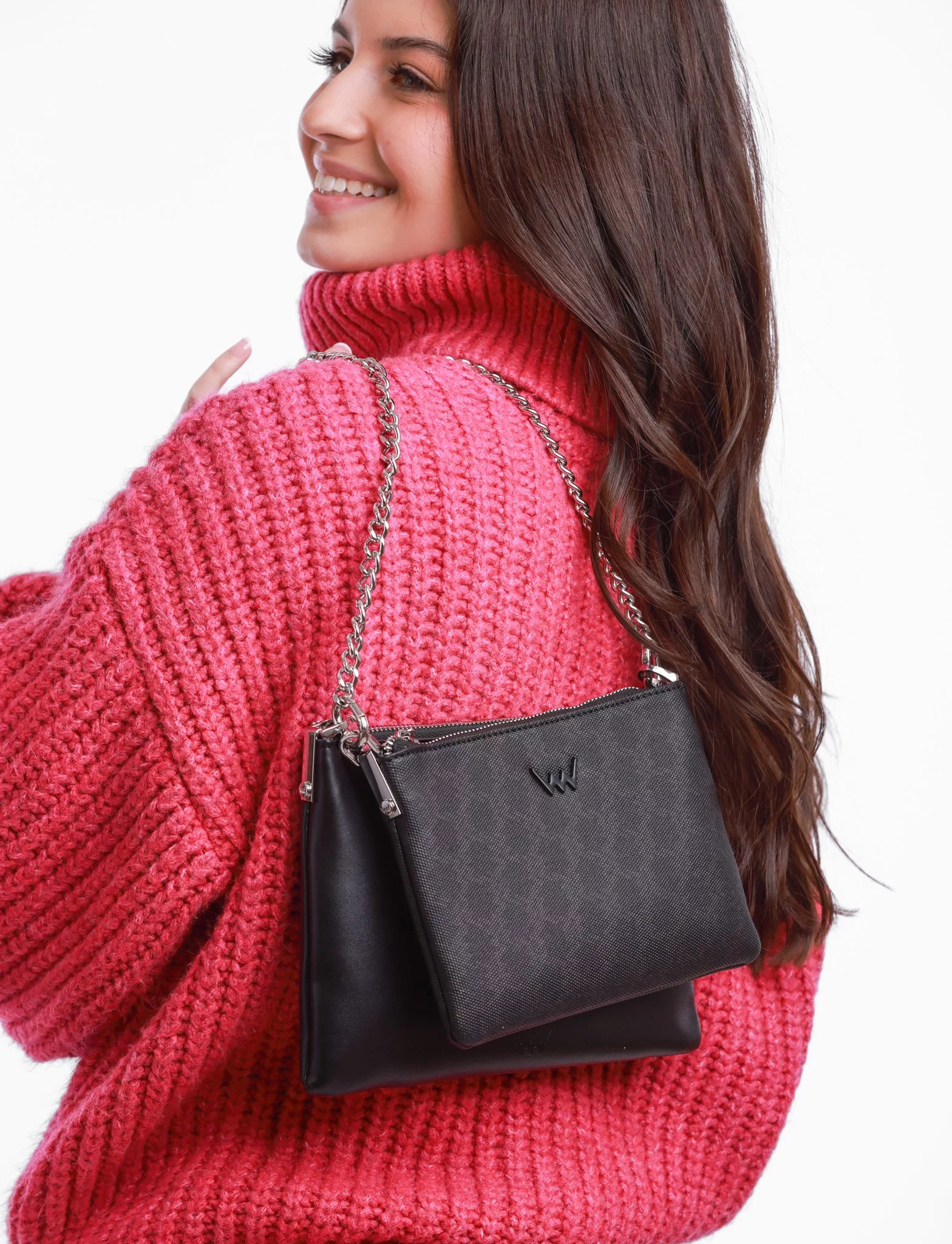- Dva popruhy - textilní crossbody a řetízkový do ruky